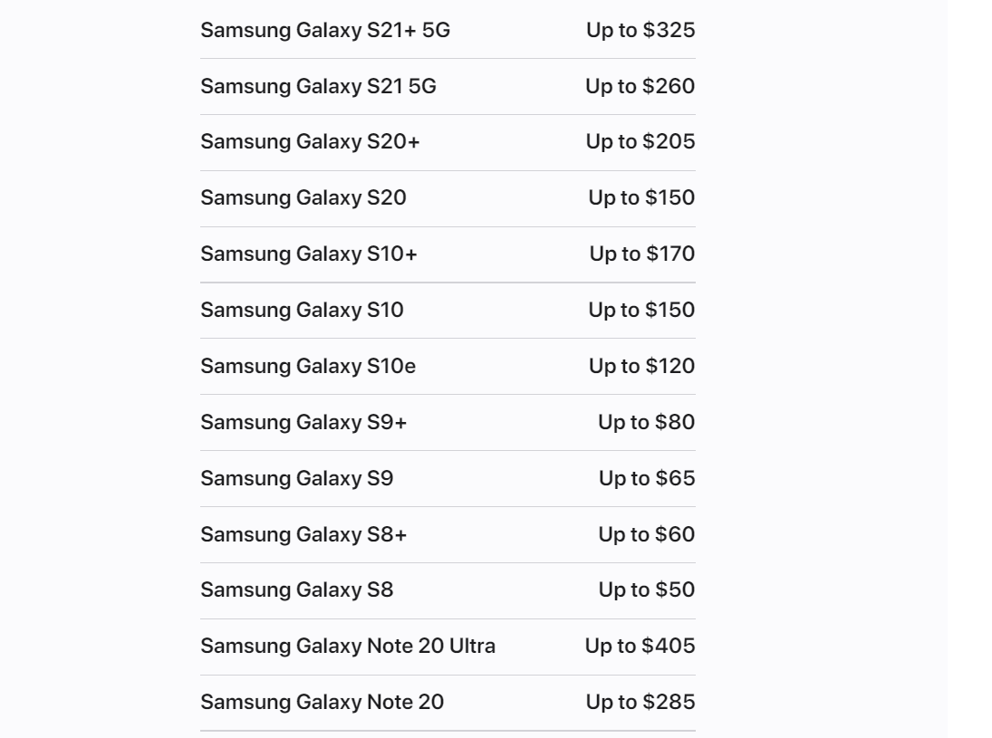 Apple has reduced the trade-in value of several Android smartphones anywhere from US$5 to upwards of US$140. The maximum amount of money that you can now get is US$405 by trading in a pristine quality Galaxy Note 20 Ultra. The value for the Galaxy Note 20 Ultra was US$545 before the reduction took place.