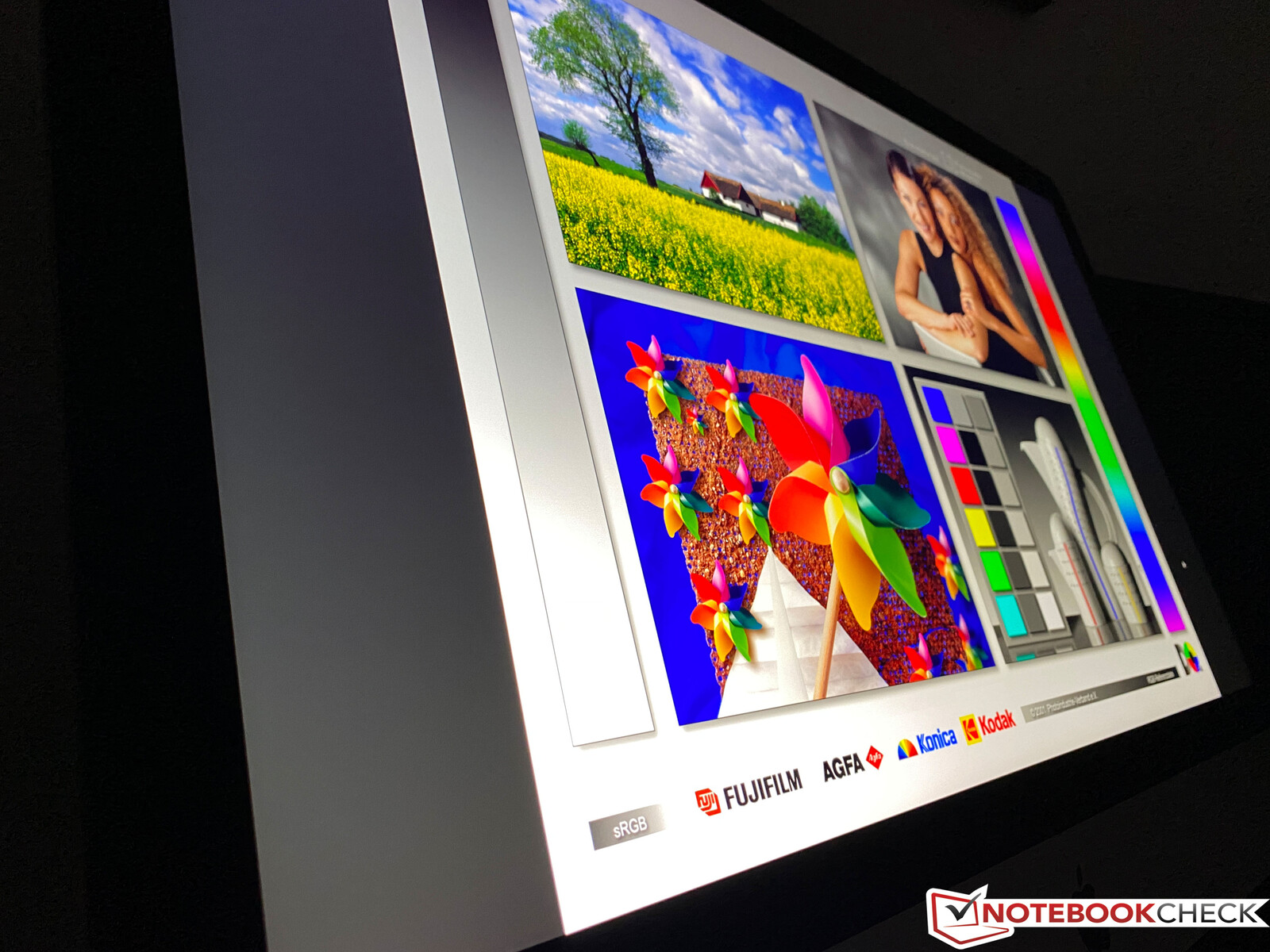 We use the professional CalMAN software in combination with the X-Rite i1 Pro 2 spectrophotometer. Compared to the iMac Pro we reviewed back in 2018, the panel ID has changed and we measured better values across the board. The brightness is a bit higher (more than 500 cd/m² on average) and the black value is a bit lower, so the contrast ratio has improved. The color accuracy is very good out of the box and calibration is not necessary, because all the color deviations are already lower than 3 (compared to the P3 reference color space). We can only improve the color accuracy slightly with our own calibration; the corresponding profile can be downloaded for free in the box above.