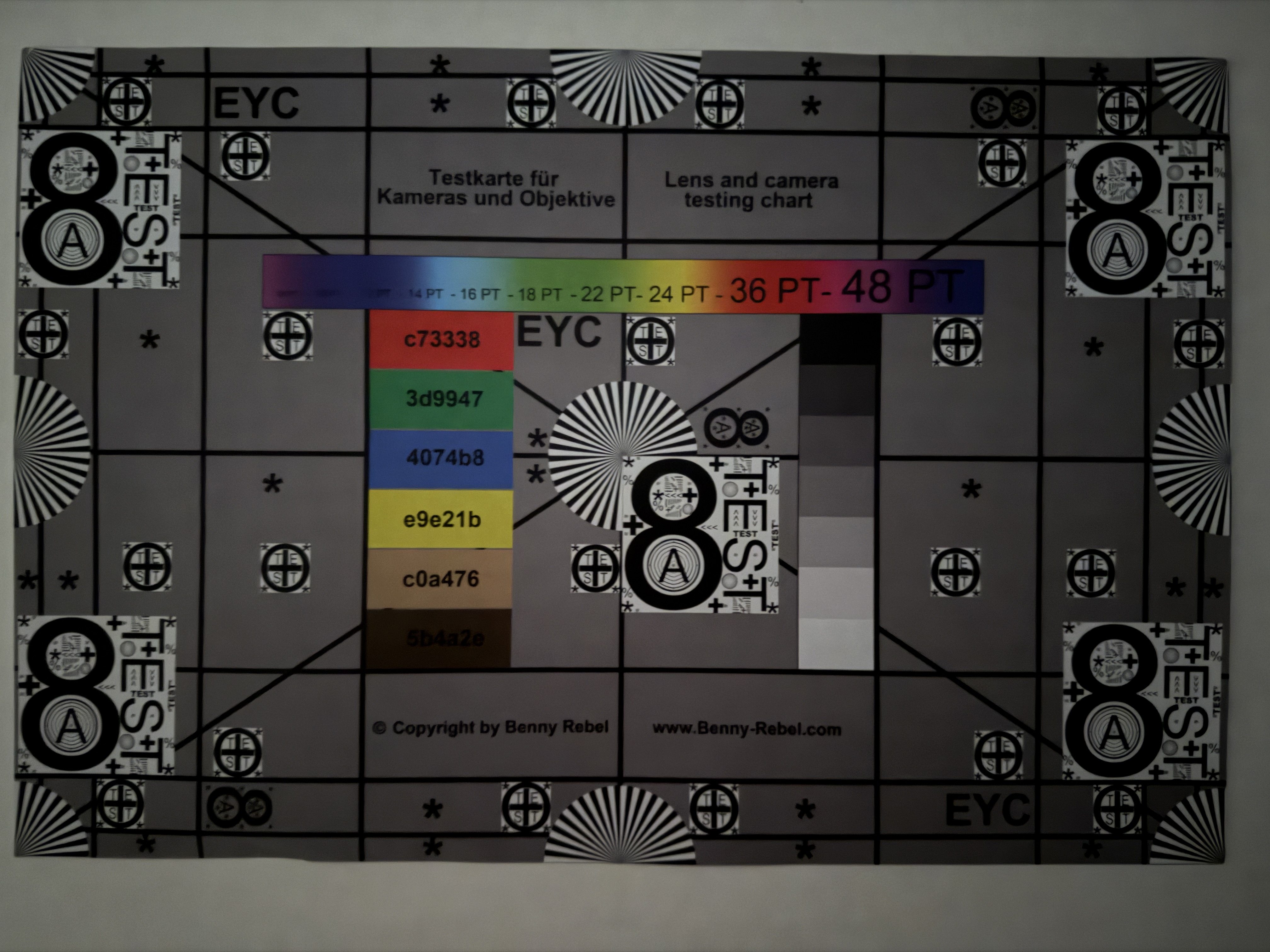 Main cameraMain cameraUltra-wide angle5x zoomLow lightUnder controlled lighting conditions, our test chart was almost consistently sharp, with hardly any blurring even at the edges. However, in the center of the image, details appeared somewhat over-sharpened and exhibited minor aberrations.