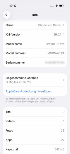 The Apple iPhone 17 Pro comes with iOS 26, including Apple Intelligence and the new Liquid Glass look. However, users in the EU are still faced with limitations, with features such as Visited Places and iPhone Mirroring not (yet) available. Further IOS 26 details can be found here.