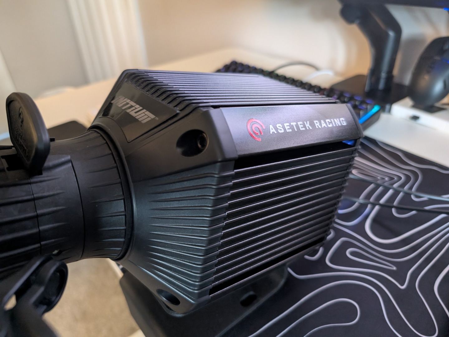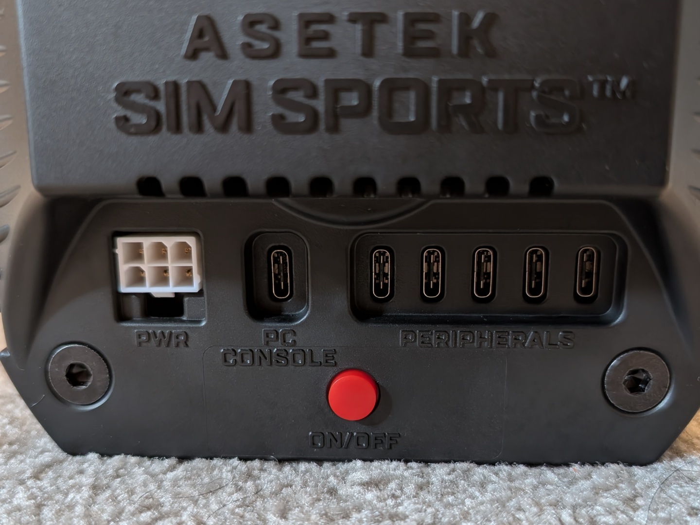 The extruded aluminum wheelbase is quite heavy at 5.7 kg and that’s because it houses up to 8 Nm of direct drive torque, though the standard bundle includes an adapter that only allows for 5.5 Nm. That’s not a compromise as it is perfectly in line with the similarly priced Moza R5 (check out our review) and Thrustmaster T598-P bundles, as well as the more expensive Fanatec CSL DD QR2 bundle. There is a quick release mechanism as well that we struggled with at first, but it got better overtime. The steering wheel got locked in place and wouldn’t come out as easily as it is supposed to with the “quick release.” We reached out to Asetek and they recommended a firm tap on the steering wheel to detach it. This is apparently an issue with first connections but it gets easier and smoother with subsequent attempts.