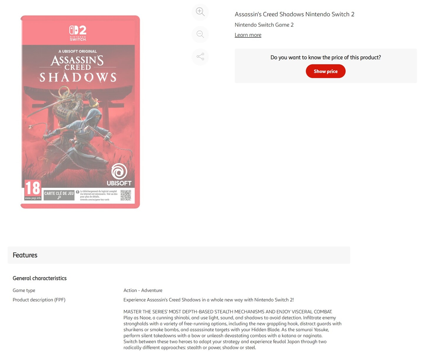 After rumors and hints from Ubisoft, an Assassin's Creed Shadows Switch 2 release looks more like a certainty. A listing with a detailed cover has appeared at the French retailer, Auchan. While there is no price or release date, the store confirms some other details. Of significance, like Star Wars Outlaws, the Assassin's Creed Shadows Switch 2 port will ship on a Game-Key Card.