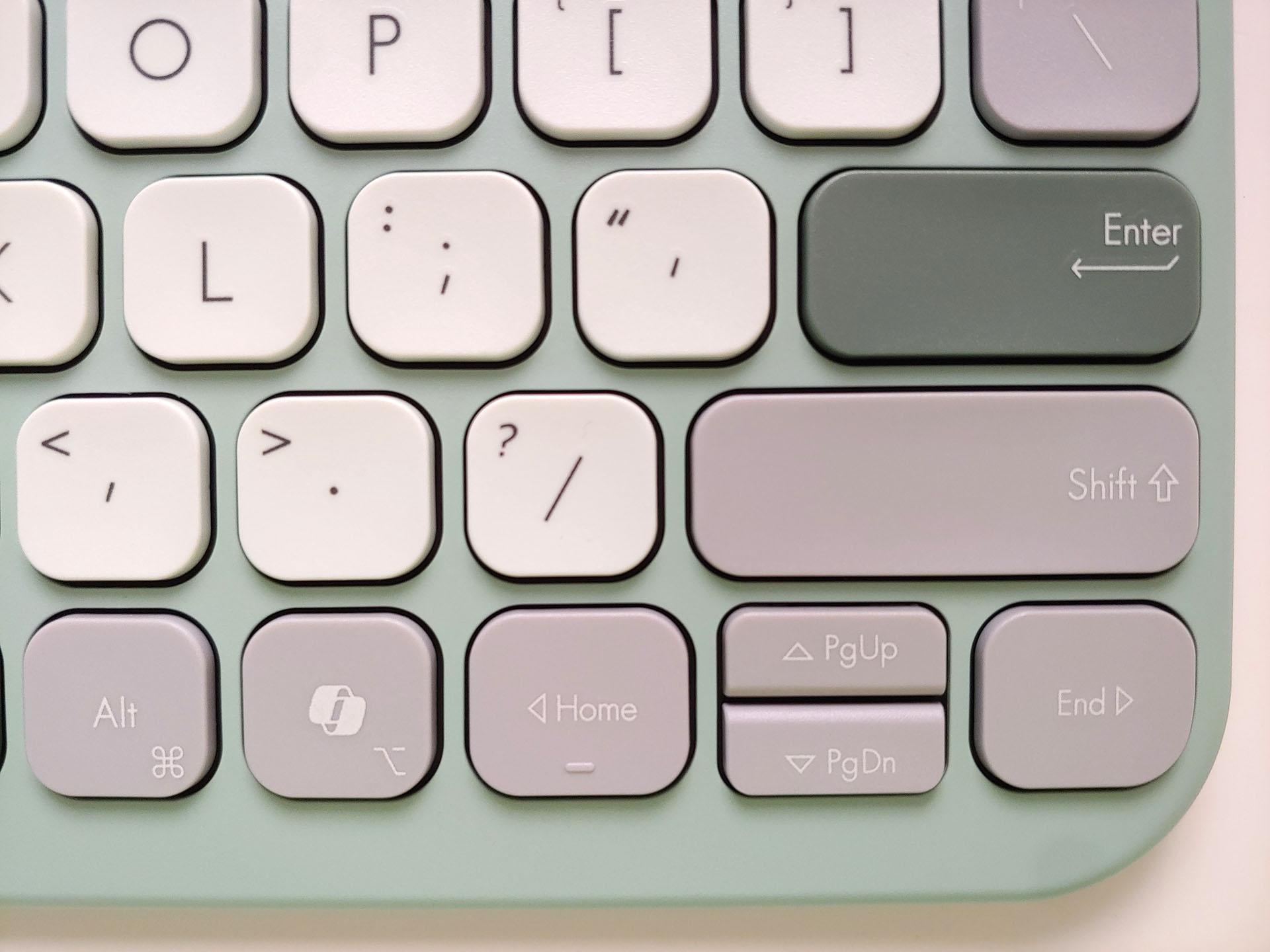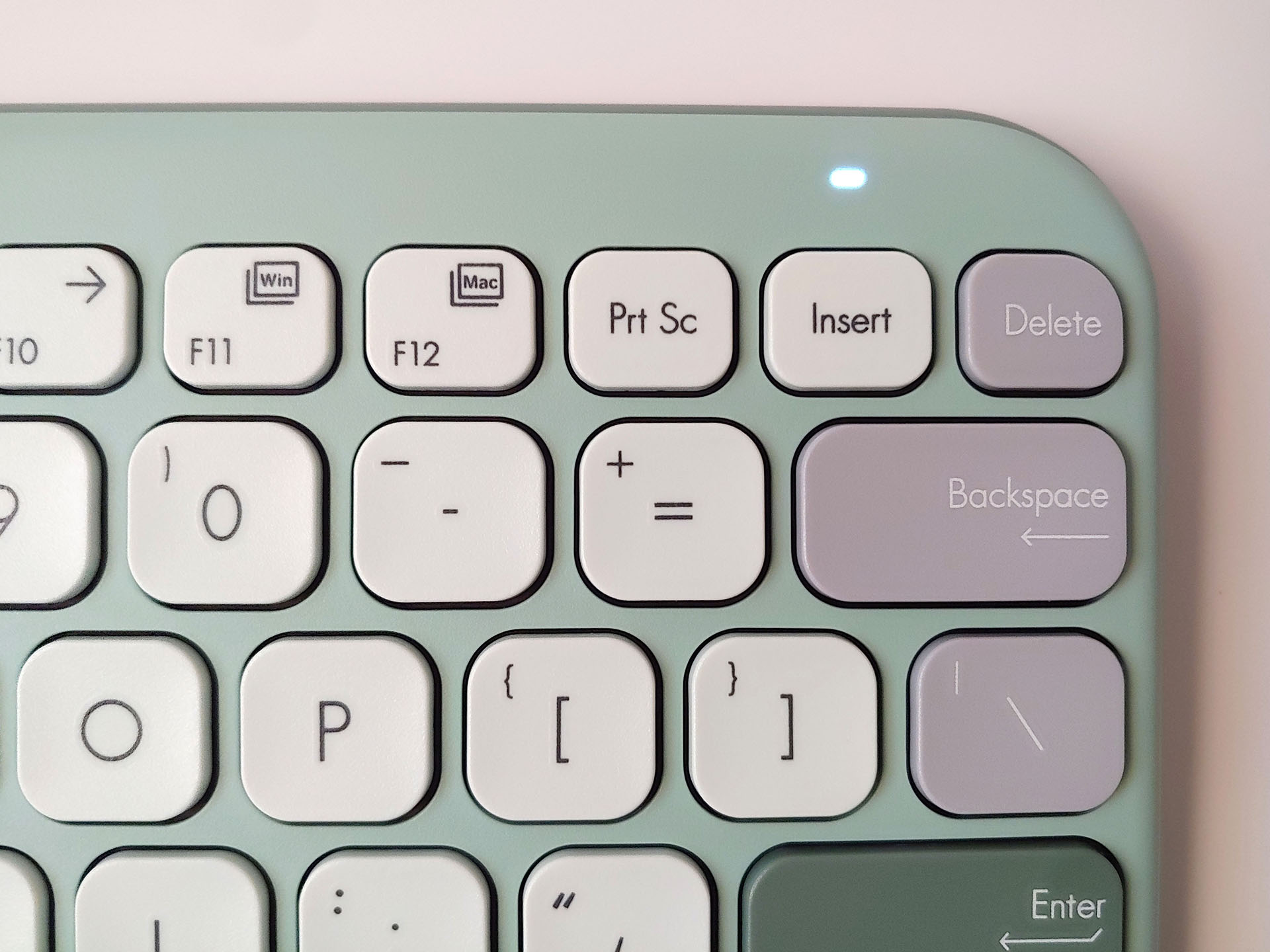For the keyboard, a press of the FN + 1/2/3 keys pairs it with up to three new devices. A small white status light above the DEL key indicates its status. The layout switches between Windows and Mac modes when pressing FN + F11/F12. Pressing FN + ESC keys toggles the function-key-row lock for users who prefer using F1-F12 over system controls, such as mute or volume up. The Copilot key brings up the Copilot AI on Windows 11 PCs.