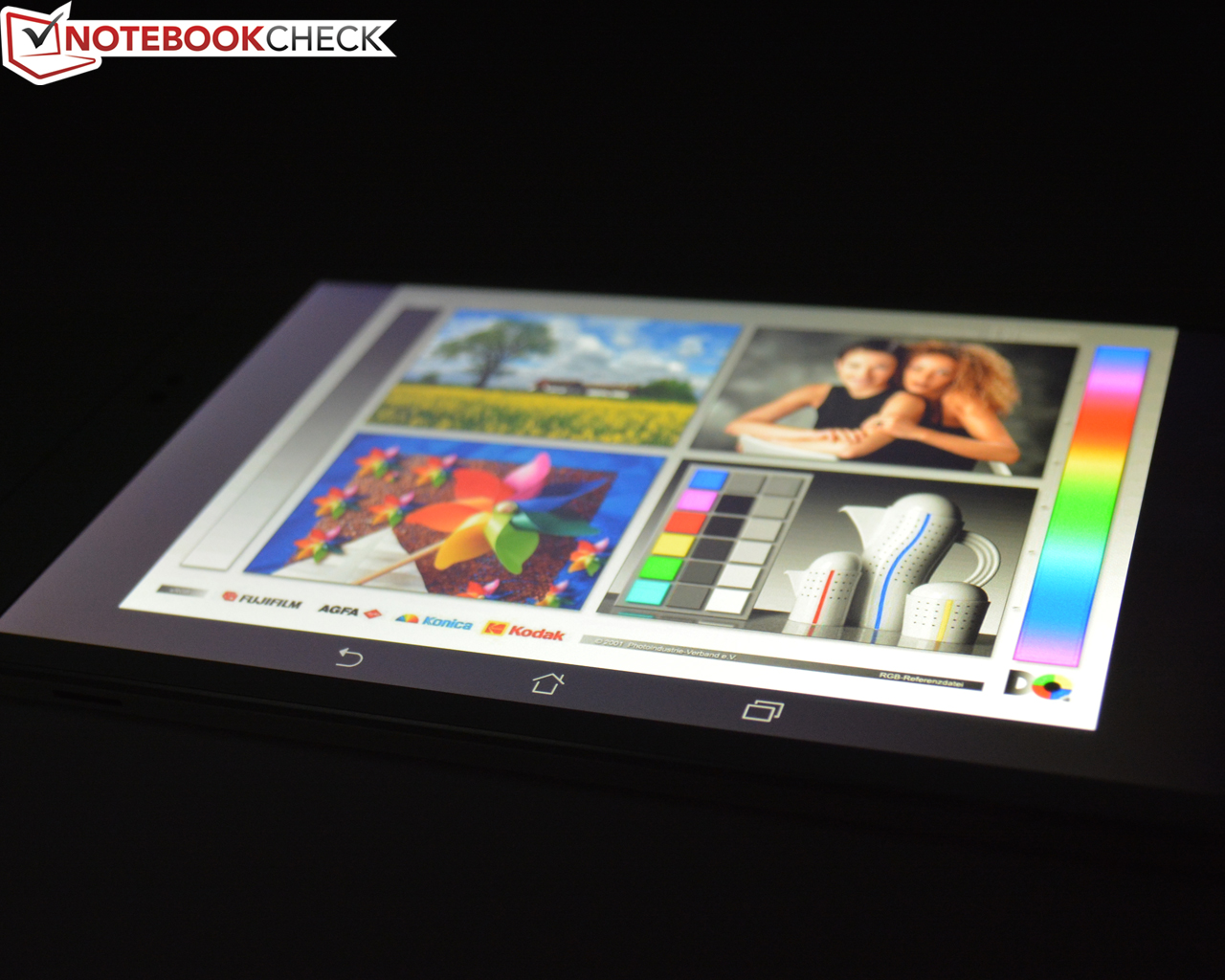 At 0.4 cd/m², the black level undercuts nearly all the competitors; only the Asus Fonepad 8 presents black better. Considering this, the contrast is very high, with a value of 1358:1. Subjectively, image content is presented in a very plastic manner and black is presented very darkly, while colors appear quite handsomely. The CalMAN analysis exposes somewhat noticeable deviations. The grayscale shows a slightly yellow tint that becomes visible right in the middle of the process. Still, the color accuracy turned out very solid; only the blue and red tones deviate visibly from the ideal. Gamma and color temperatures are very near optimal. Overall, the Asus Memo Pad 8 presents good color display, and the deficits are not noticeable.