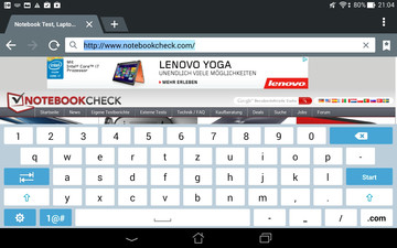 In the synthetic benchmarks, the Asus tablet is certainly one of the fastest tablets and even sets new records within the comparison in PassMark and Epic Citadel. Compared to the predecessor Memo Pad HD 7, the review unit is significantly faster. The HP Slate 8 Pro 7600eg and the LG G Pad 8.3 are a bit faster in total.