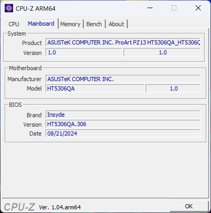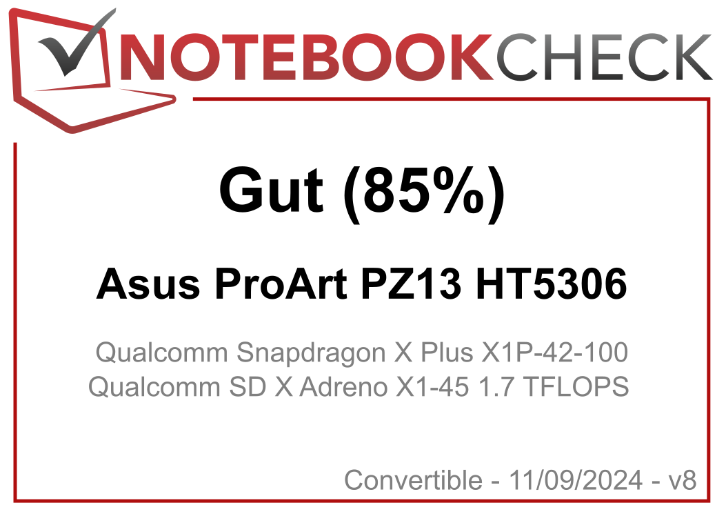 85.3 % | v8 | 09 / 2024 | Asus ProArt PZ13 HT5306 SD X Plus X1P-42-100, Adreno X1-45 1.7 TFLOPS | 874 g | 9 mm | 13.30" | 2880x1800 | |