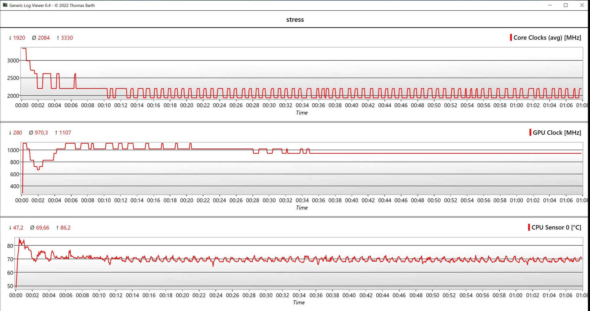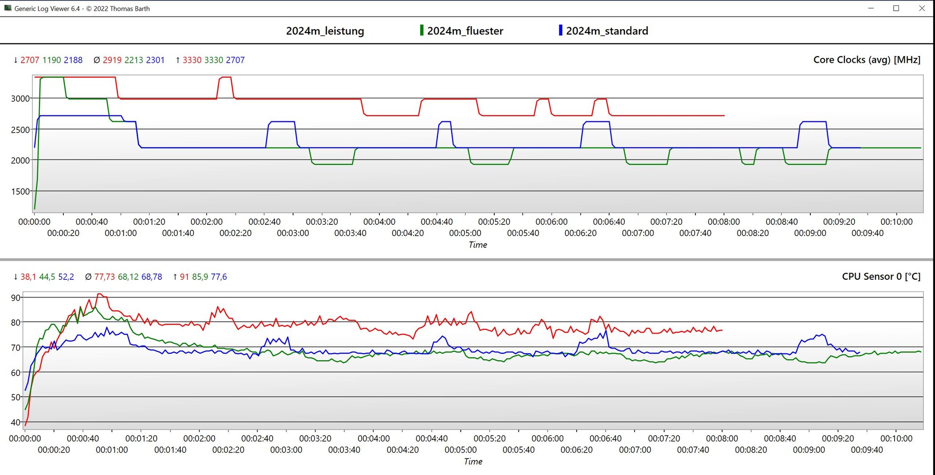 The PZ13 requires only little power, especially in idle mode—we noted a maximum of 6.1 watts. However, compared to the Surface Pro (which has a much brighter 120-Hz OLED), these are by no means record values. Under load, it then briefly reached up to 60 watts, which is quite a lot considering the small Snapdragon X Plus. During the further course of the stress test, its consumption then fluctuated between 30-40 watts. The included 65-watt power supply is therefore sufficient in size. Still, its standby consumption of 0.94 watts is too high.