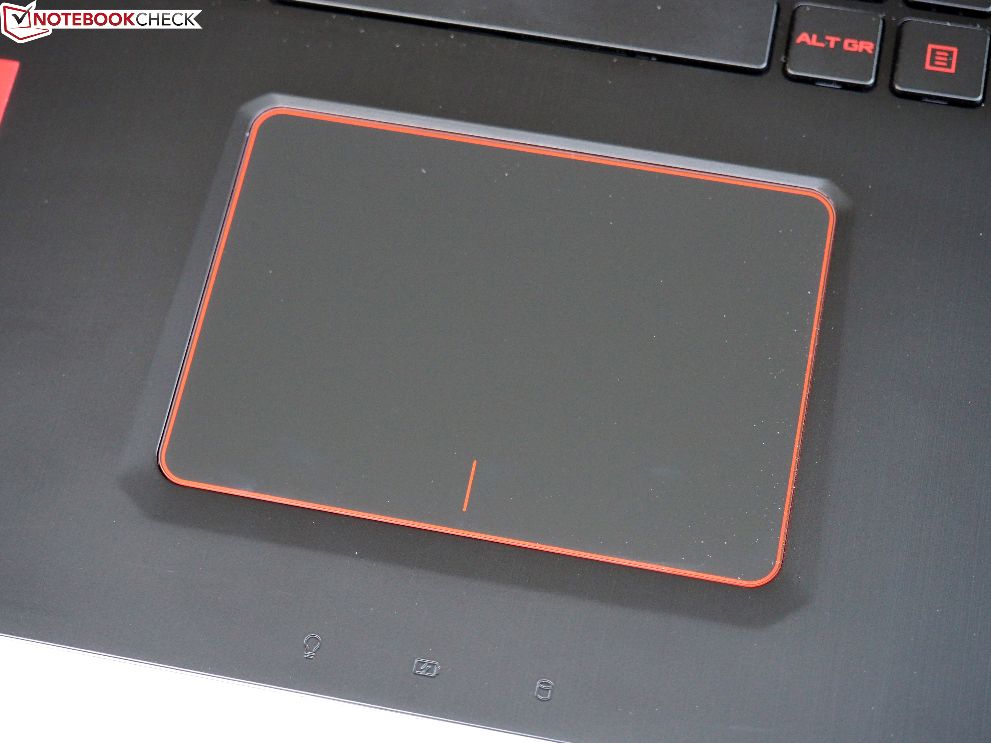 The mouse replacement with a size of 10.3 x 7.2 cm is a ClickPad. Unfortunately, the GL702ZC confirms that touchpads without dedicated mouse buttons do not always works flawlessly. Sometimes left and right clicks lack reliability as the system registers a mouse movement instead of a click and the general precision does not fully reach a (good) conventional touchpad's.