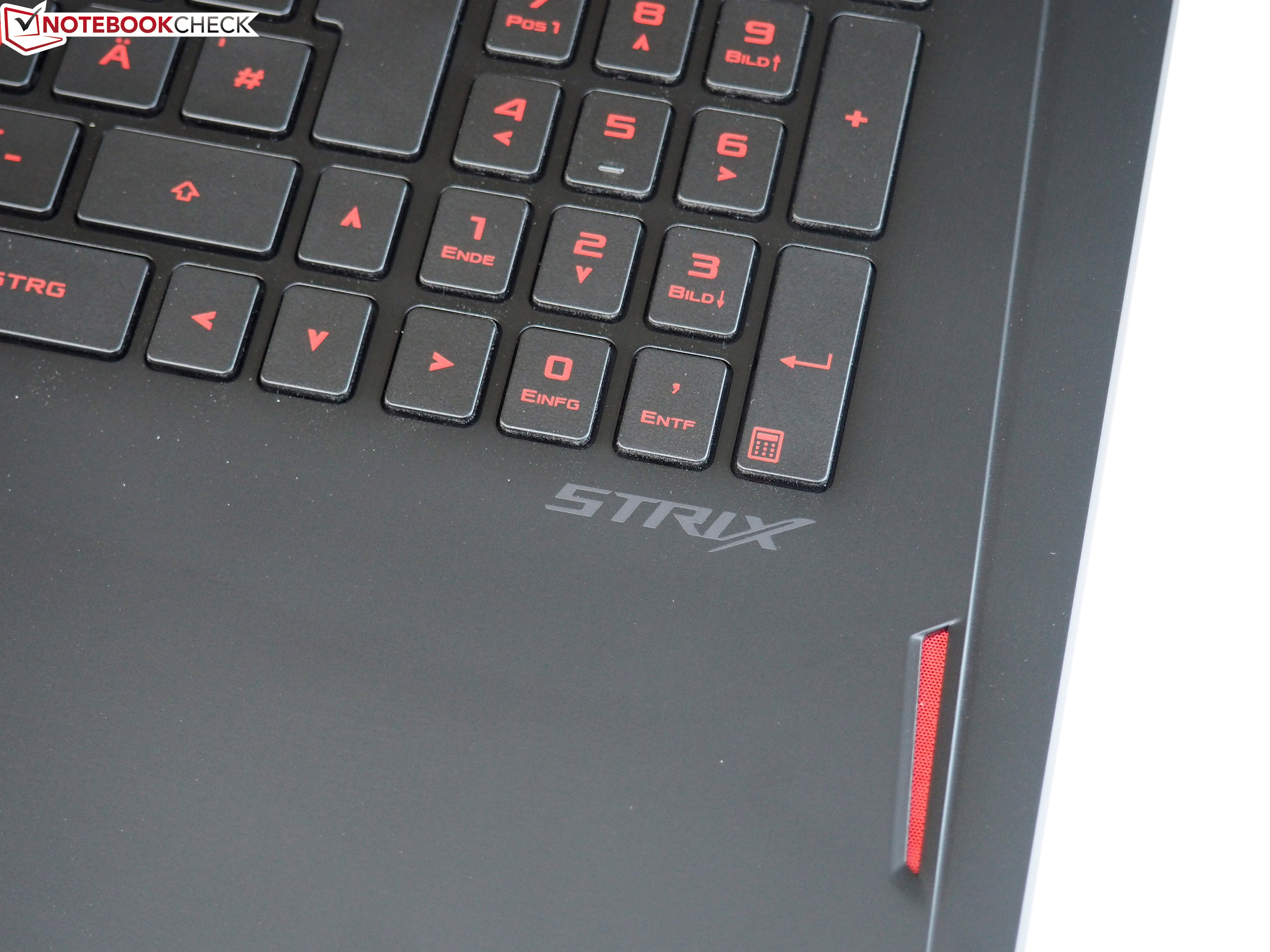 Speaking of the backlight: Asus does not follow the trend and omits an individual RGB key light. The entire keyboard features a multi-level, red key light. Moreover, the GL702ZC lacks macro keys. It is up to you if you consider this features important or not (we tend toward the latter group). Asus should improve the key labels. The legibility suffers from the pale red color - even in daylight. Most manufacturers use white labels for a reason.