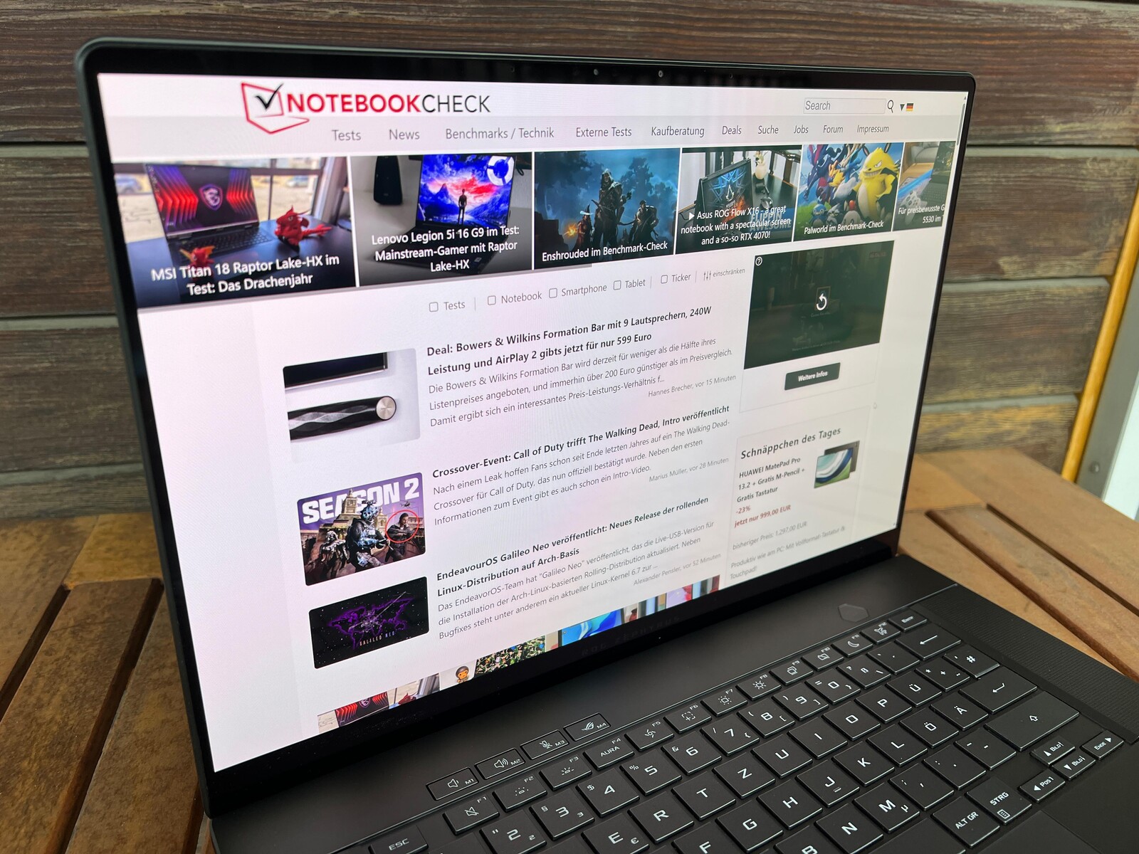 The laptop's power consumption measurements are less of a surprise, although the test device benefitted massively from its dark standard wallpaper during the idle measurements in particular. As is typical for OLED displays, consumption varies depending on which content is depicted, with light images using up more power. While gaming, we noted 120 watts and during the stress test, it hit 170 watts for a short period of time—this then balanced out quickly at 165 watts. As a result, we can safely say that the 200-watt power supply is more than powerful enough; configurations with the RTX 4080/4090 Laptop come delivered with a more powerful 240-watt power supply.