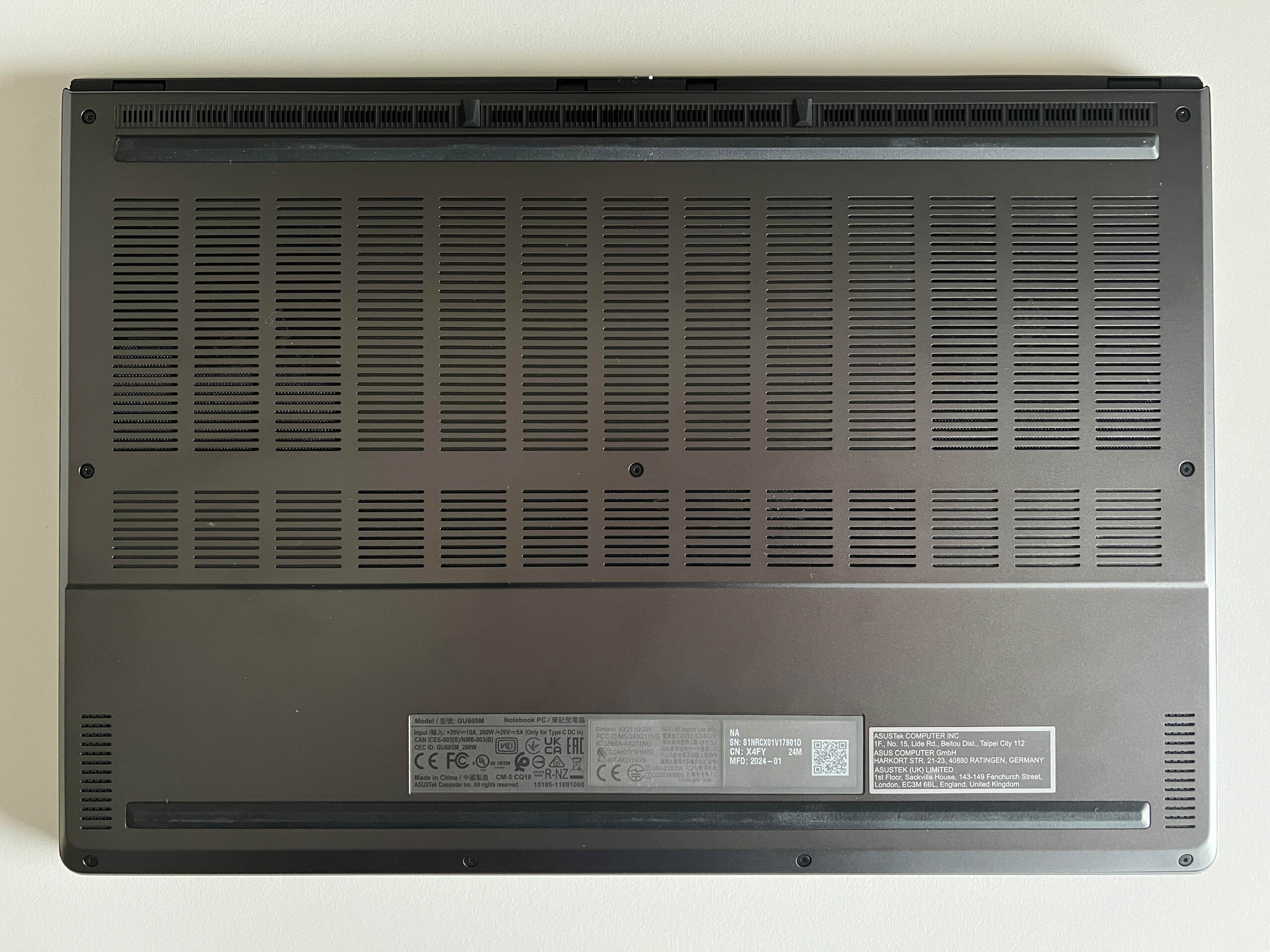 Aside from the visible screws, two further ones are hidden beneath glued-on rubber covers. This makes accessing the components unnecessarily difficult. However, you can't really get up to much on the inside anyway, as the RAM is now soldered on. On the flip side, there are two slots for SSDs and if desired, the WLAN module and battery can be swapped out. You can also access the fans to clean them.