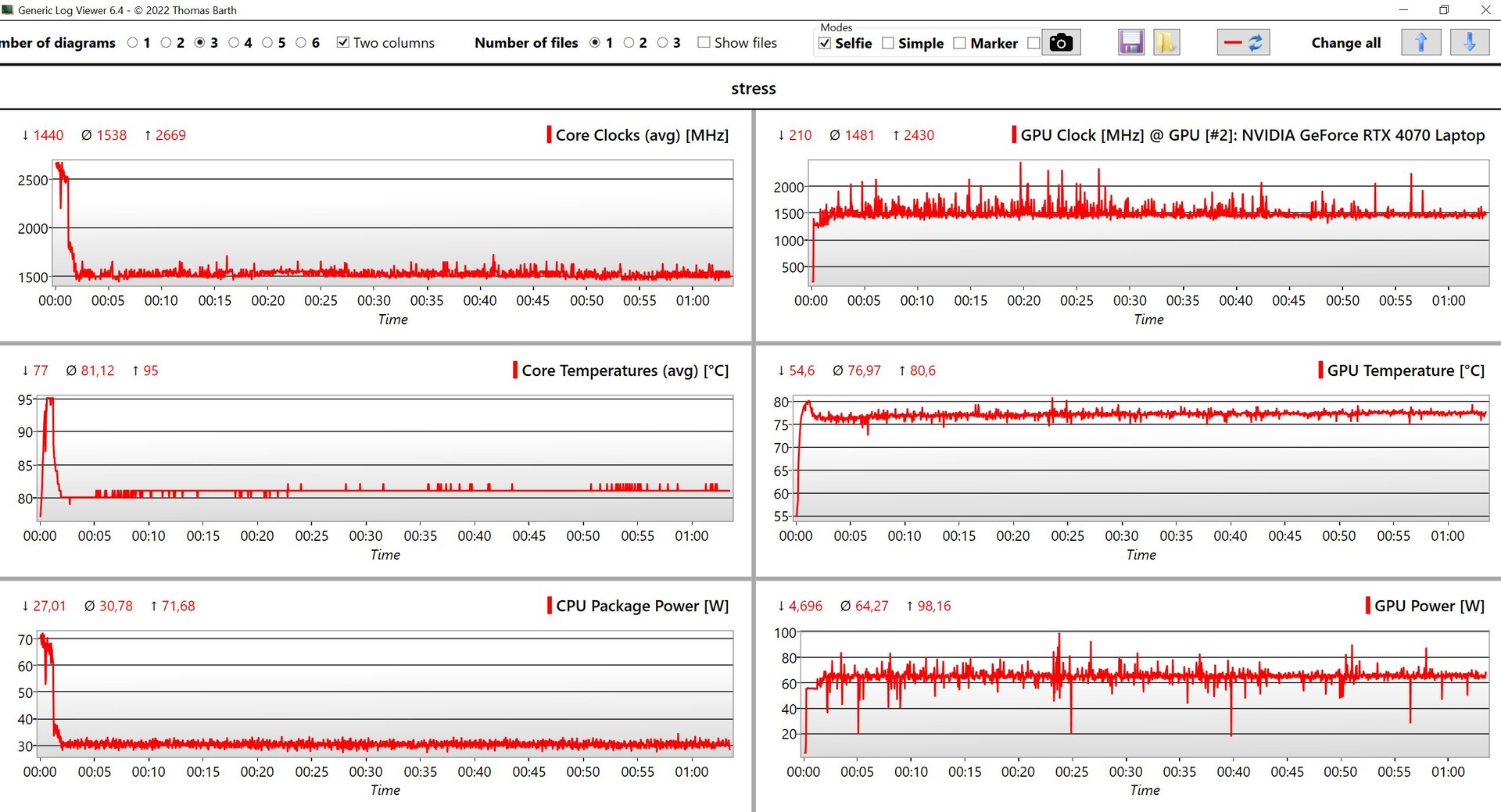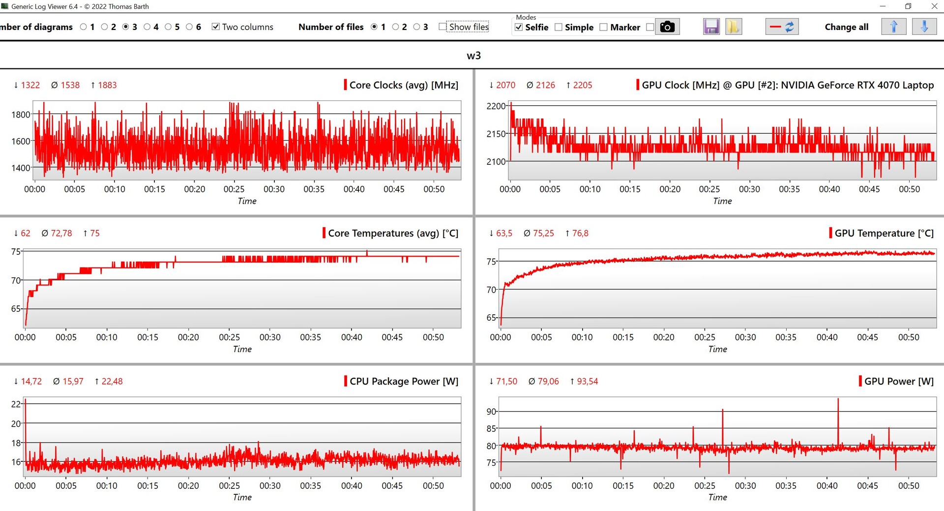Its components' performance is good, too, although the new Meteor-Lake processor doesn't really offer any increased performance compared to its old Raptor-Lake counterpart—plus, its single-core performance is actually even worse. The new mobile processors' actual strength—the new Arc iGPU—doesn't bring much to the table in this case, as a dedicated Nvidia GPU is installed into the device.