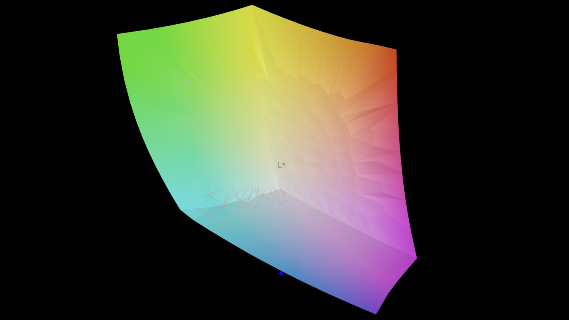 We additionally calibrated the display ourselves—with mixed results. Although we were able to improve grayscale deviations ever so slightly, this resulted in larger color deviations and all-in-all, it didn't really improve the situation. This is why we aren't making the corresponding profile available for download. The display covers the P3 color space in its entirety, but it also features a very accurate sRGB mode, in case you would like to edit photos or videos in the smaller color space.