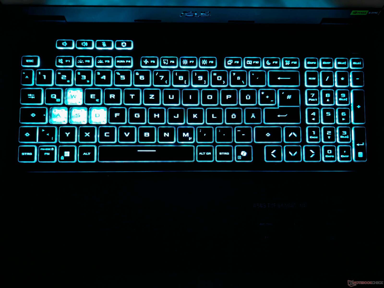 The WASD keys are slightly offset in terms of design, which is also clearly recognizable when the one-zone RGB lighting is activated.