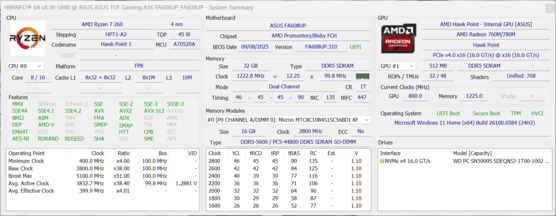 However, the choice of processor does not make immediate sense to us. The AMD Ryzen 7 260 is based on the Zen 4 architecture that is not exactly new, and this also has a negative effect on performance in some games. At this point, the TUF Gaming A16 seems somewhat unbalanced.