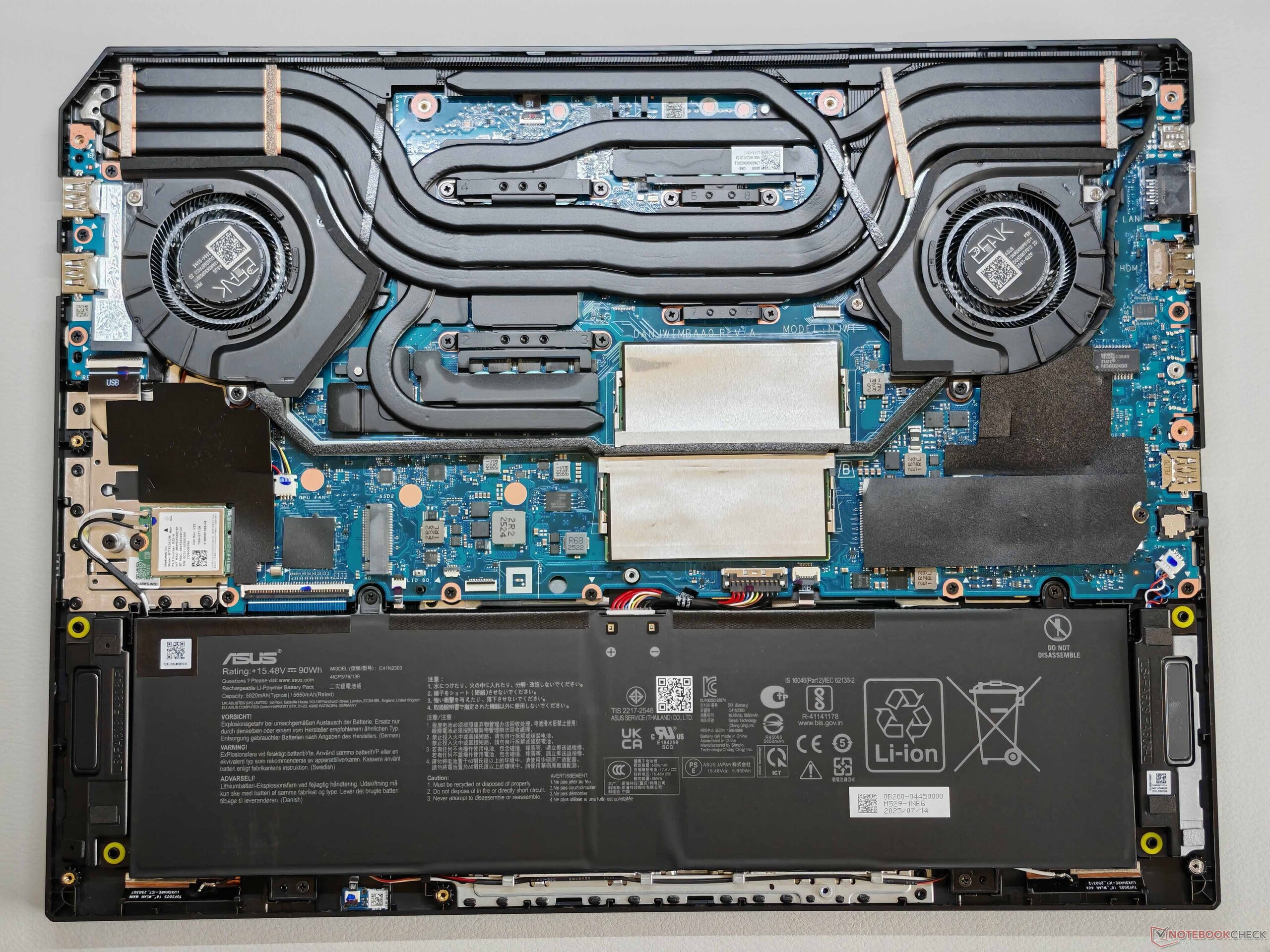 This picture also continues with the features. As mentioned, there are good maintenance options and other useful features such as G-Sync and Advanced Optimus graphics switching, but you have to do without USB 4 or Wi-Fi 7. That being said, input devices are comfortable and battery life is once again very good.