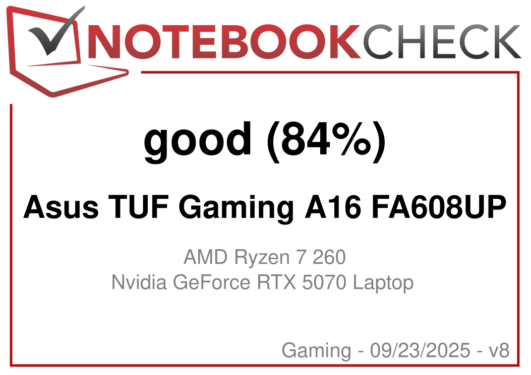 The Asus TUF Gaming A16 enables fast QHD Ultra gaming thanks to its 115 W RTX 5070 Laptop GPU, and offers good battery run times. However, the laptop could have surely benefitted from a more modern AMD APU, considering the high asking price.