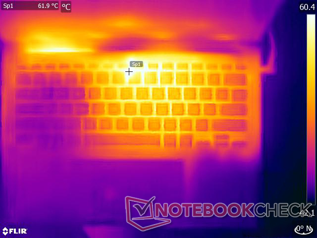 According to Asus, the VivoBook 14X's cooling system can afford a combined 55 W TDP from the CPU and the GPU. Our stress testing confirms this claim, as we observe an average power consumption of 56 W while running Prime95 + FurMark and 52 W during The Witcher 3 stress test.