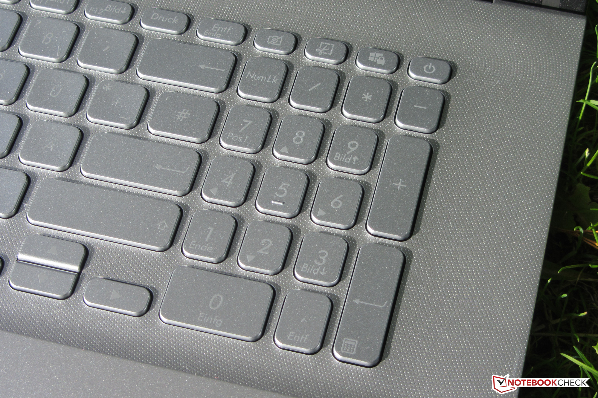 The multi-touch capable touchpad has a footprint of about 10.5 x 7.3 cm (~4.1 x 2.9 in). This offers sufficient space for using gesture controls. The smooth touchpad surface facilitates the sliding of fingers and also responds to input in the corners. The pad offers a short stroke and a clear pressure point.