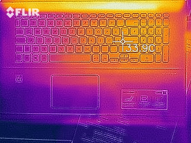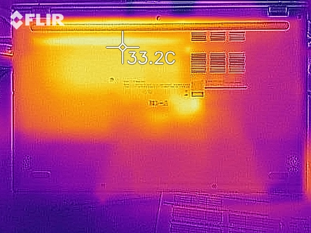 (+) The palmrests and touchpad are cooler than skin temperature with a maximum of 27.7 °C / 81.9 F and are therefore cool to the touch.