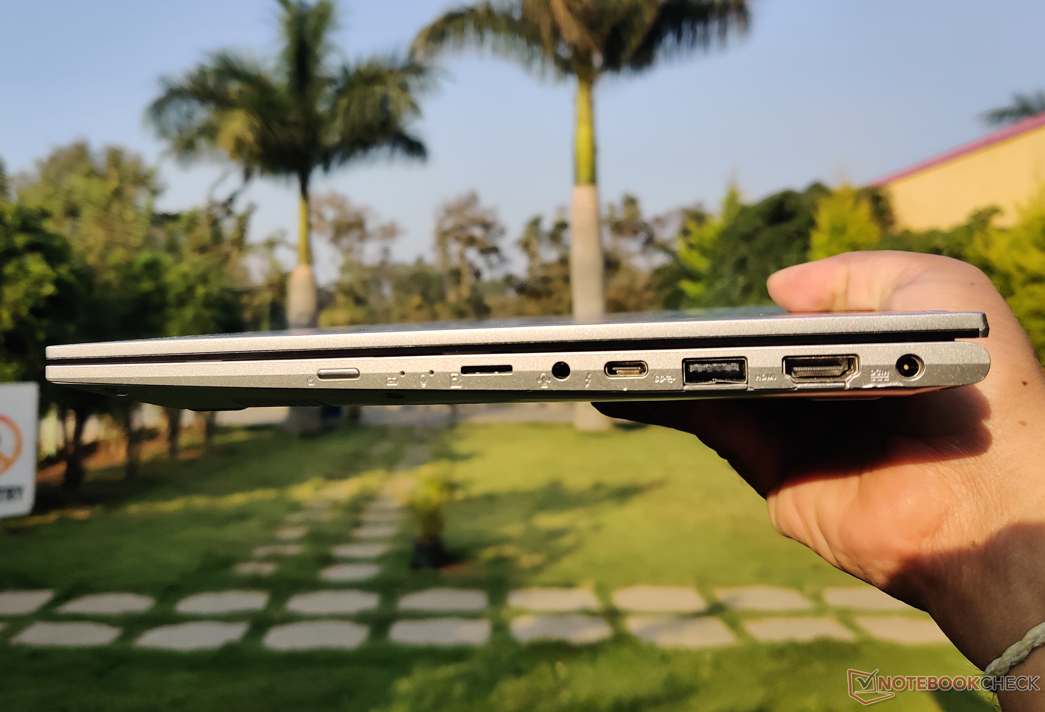 The VivoBook Flip 14 does not boast of a very extensive port selection, but it does cover all essentials. The port placement is similar to what we've seen with the Flip 14 TM420IA, and adjacent interfaces are not obstructed when multiple devices are connected.