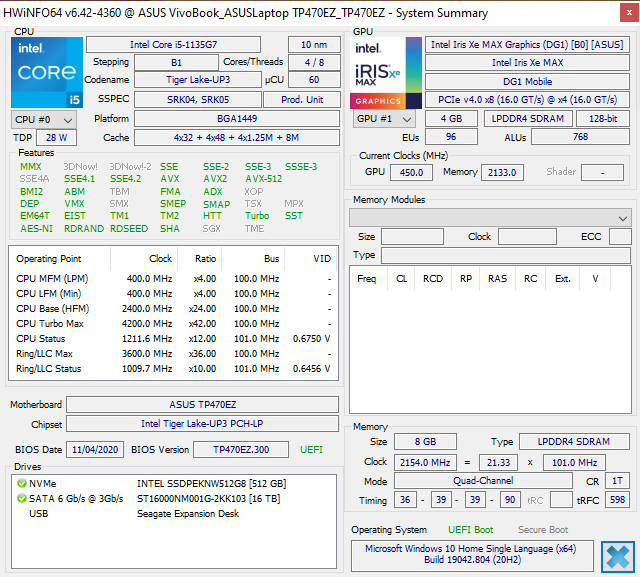 | Asus VivoBook Flip 14 TP470EZ i5-1135G7, Xe MAX, 42 Wh | Dell XPS 13 9305 Core i5 FHD i5-1135G7, Iris Xe G7 80EUs, 52 Wh | MSI Summit B15 A11M i7-1165G7, Iris Xe G7 96EUs, 52 Wh | Acer Swift 5 SF514-55T-58DN i5-1135G7, Iris Xe G7 80EUs, 56 Wh | Schenker XMG Core 14 i5-1135G7, GeForce GTX 1650 Mobile, 49 Wh | |