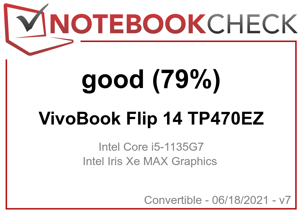 There is also scope for improvement in other aspects. For instance, we would have preferred to see a lower noise profile coupled with better energy efficiency and a higher battery capacity. Taking all things into consideration, the VivoBook Flip 14 scores a 79% rating in our review, which is a good score for the features and performance on offer. That being said, the VivoBook Flip 14 is not without competition. The Acer Swift 5 and Schenker XMG Core 14 featuring the same processor fared much better overall.