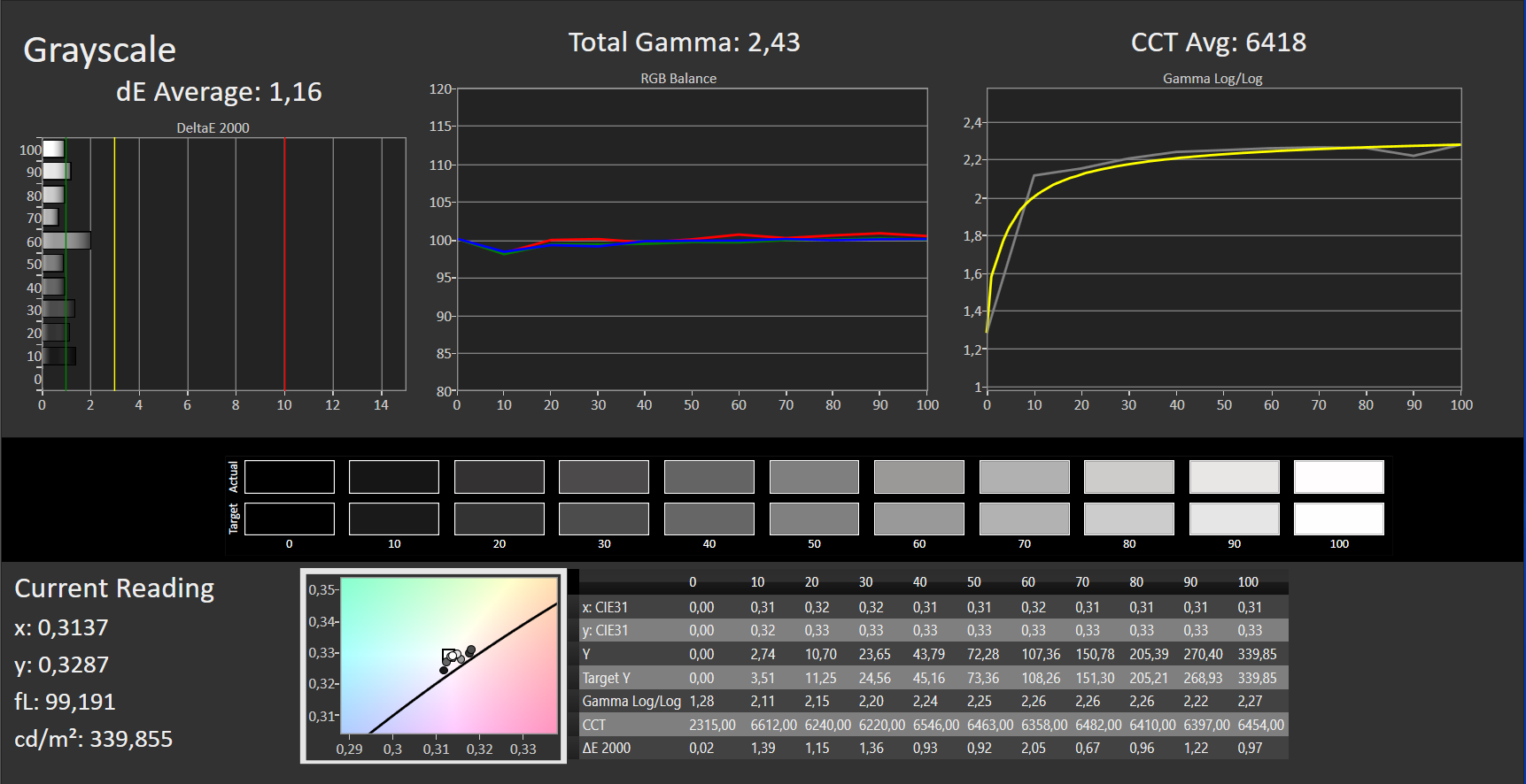 ΔE Greyscale Calman: 1.16 | ∀{0.09-98 Ø5}