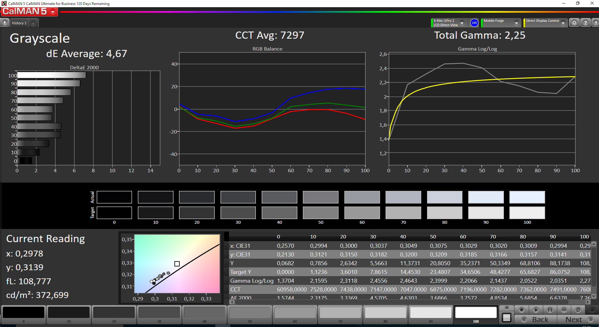 ΔE Greyscale Calman: 4.67 | ∀{0.09-98 Ø5}
