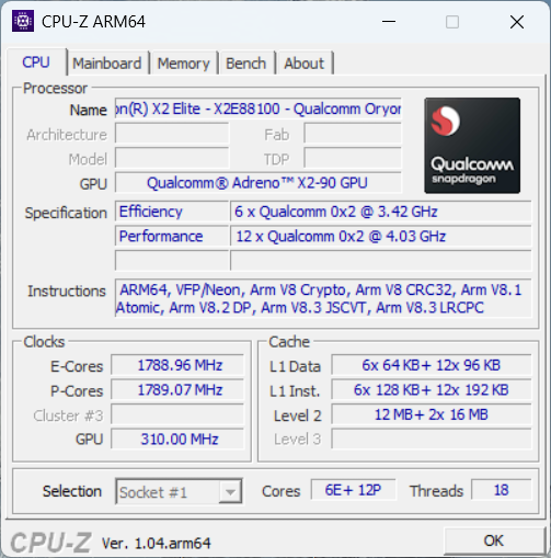 | Samsung Galaxy Book4 Edge 14 Qualcomm Snapdragon X Elite X1E-80-100 ⎘ Qualcomm SD X Adreno X1-85 3.8 TFLOPS ⎘ 16 GB Memory | List Price: 1569€ | 1.2 kg | 10.9 mm | 14.00" 2880x1800 243 PPI OLED | |