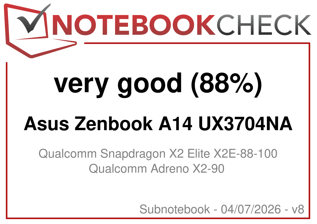 Asus updates its extremely lightweight 14-inch subnotebook Zenbook A14 and it is the first device with Qualcomm's latest Snapdragon X2 Elite chip, so it gets a massive performance increase compared to the previous model with the old Snapdragon X Plus. The chassis weighs under 1 kg and the construction did not change, which also includes the 60 Hz OLED screen. The base model starts at $1149 with the X2 Elite SoC, 24 GB RAM and 512 GB SSD storage, while our review unit is the SKU with 32 GB RAM and 1 TB SSD storage for $1799. please also see our Snapdragon X2 Extreme analysis.
