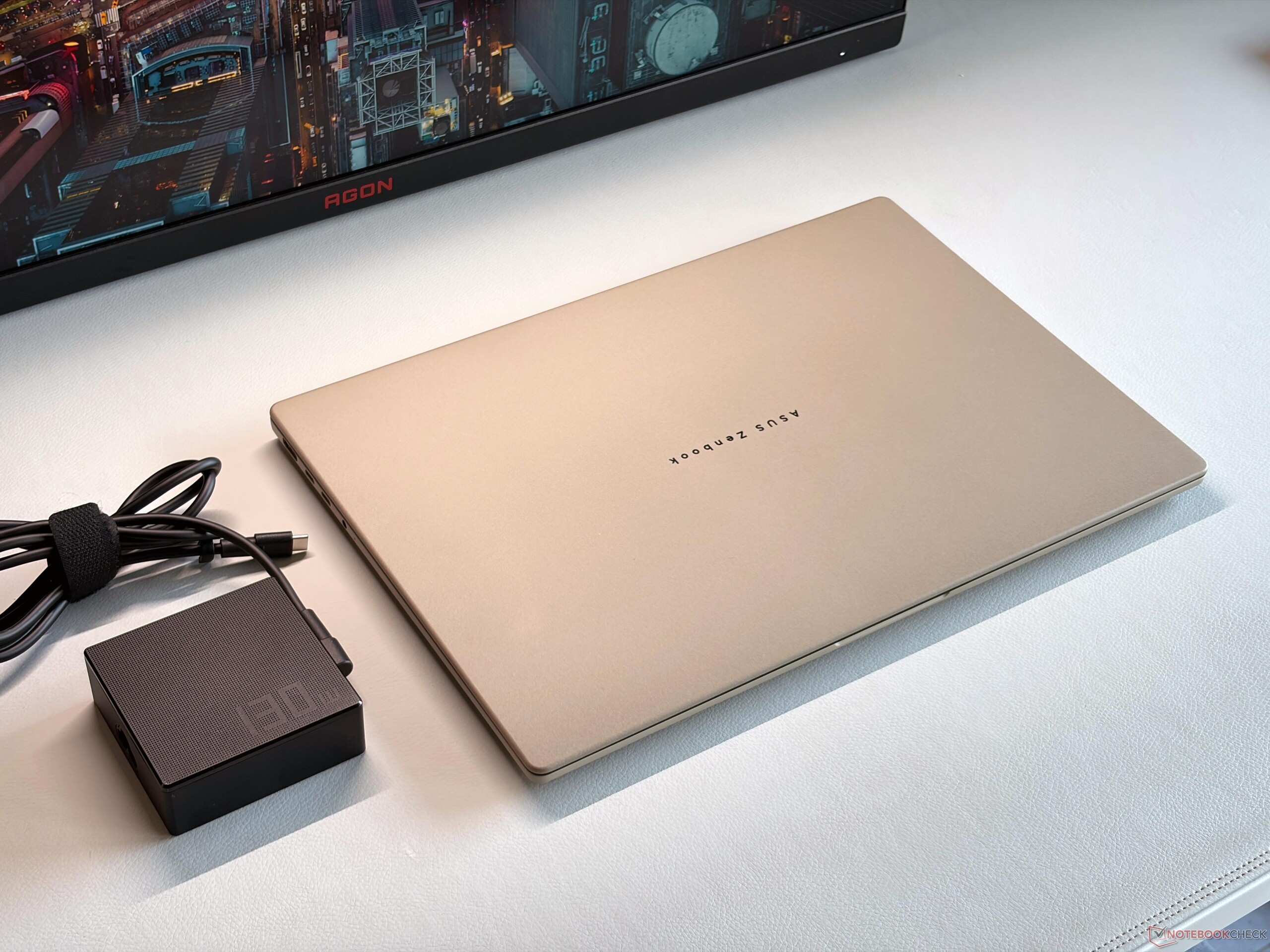 The lower weight of the Zenbook A16 is noticeable compared to the rivals and even the smaller 15-inch MacBook Air is 300 grams heavier. The included 130W power supply tips the scale at 469 grams.