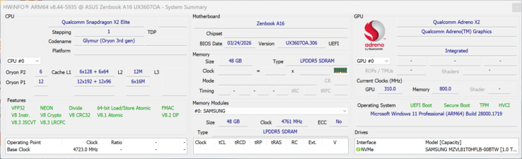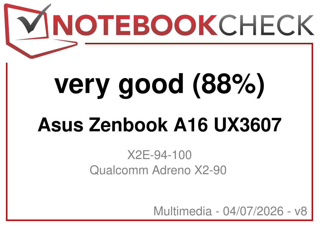 Following the Snapdragon powered Zenbook A14 from 2024, Asus now also launches a larger 16-inch model as a direct rival for the Zenbook S16 and devices like the Dell XPS 16 or Samsung's Galaxy Book6 Pro 16 and obviously Apple's 15-inch MacBook Air. The new Zenbook A16 also uses a very lightweight chassis and tips the scale at just 1.21 kg. For $1599 you get the brand-new Qualcomm Snapdragon X2 Elite Extreme processor in combination with 48 GB RAM, 1 TB SSD storage as well as a 16-inch OLED panel with 120 Hz and 2.8K resolution. Please also see our analysis of the new Snapdragon X2 Elite chips for more details:
