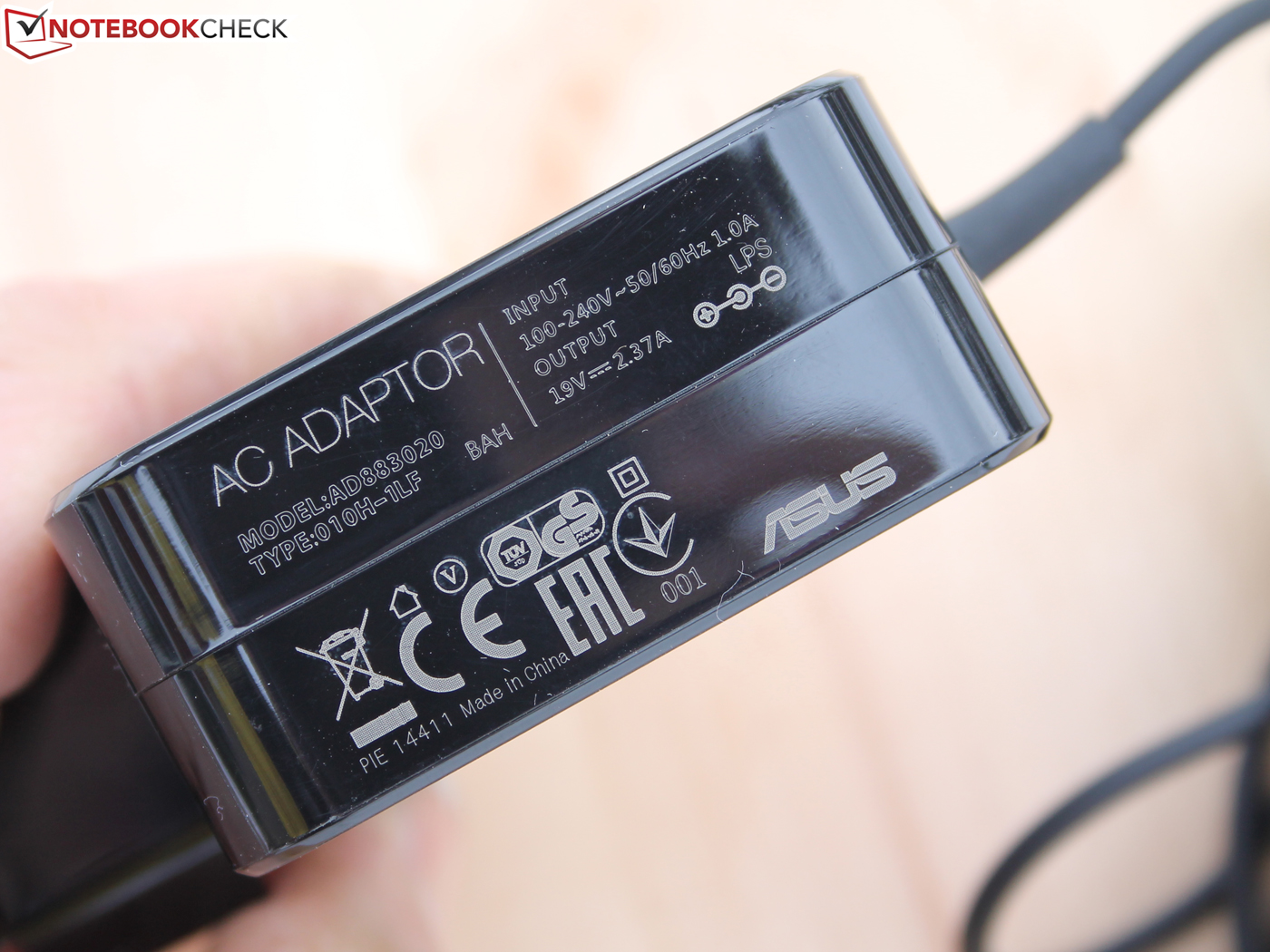 An Ethernet adaptor is not integrated; fortunately, the included USB-to-Ethernet dongle can also be used as a Gigabit adaptor. Until now, the RJ45 dongles provided by Asus were always 10/100 Mbit LAN adaptors (for example, UX303LN). Bluetooth is likewise included. Asus does not offer a 3G variant with modem and SIM-card slot.