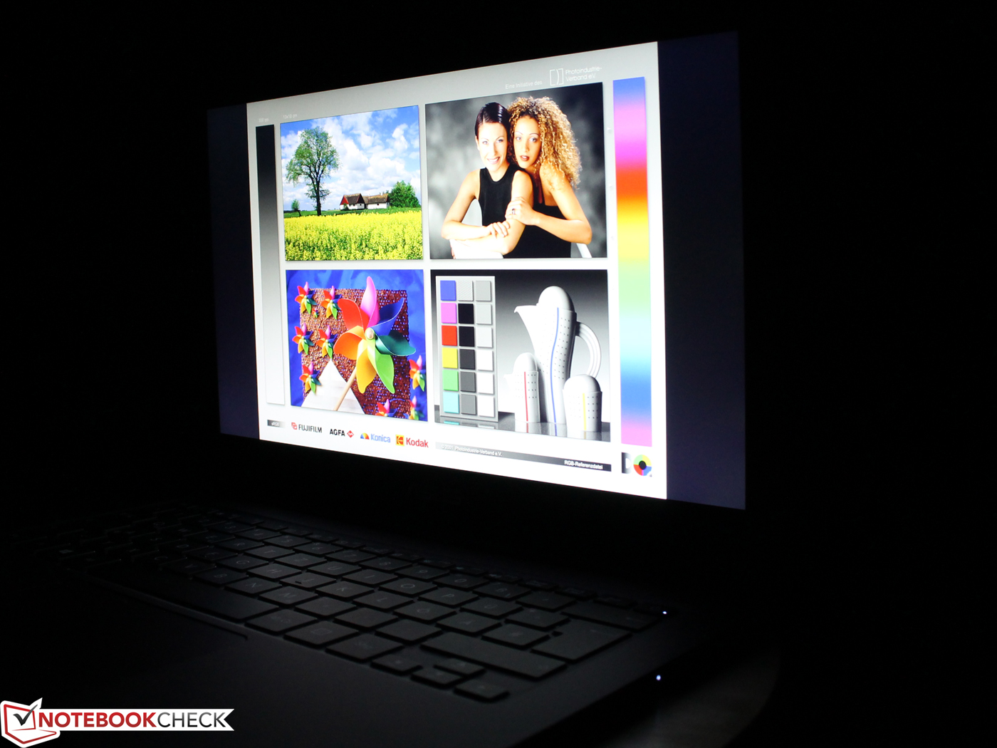 Contrast is another story, though. We ran the measurements twice, because we didn't want to believe the low rating of 413:1. It stuck, though, which is why the UX305 lags far behind the competitors when it comes to sharp colors. Color presentation via sRGB is something else entirely; here, the Samsung QHD+ panel hits the color reference exactly. We could not significantly improve the DeltaE of 2.5 and 1.9 (color / grayscale) with any calibrations. Why even bother, with a DeltaE under 3? The human eye can't detect any difference between reference and on-screen color. Still, professionals will have to consider this panel carefully, since neither AdobeRGB1998 nor the smaller sRGB spaces are fully realized. Still, this only seldom works with notebooks.