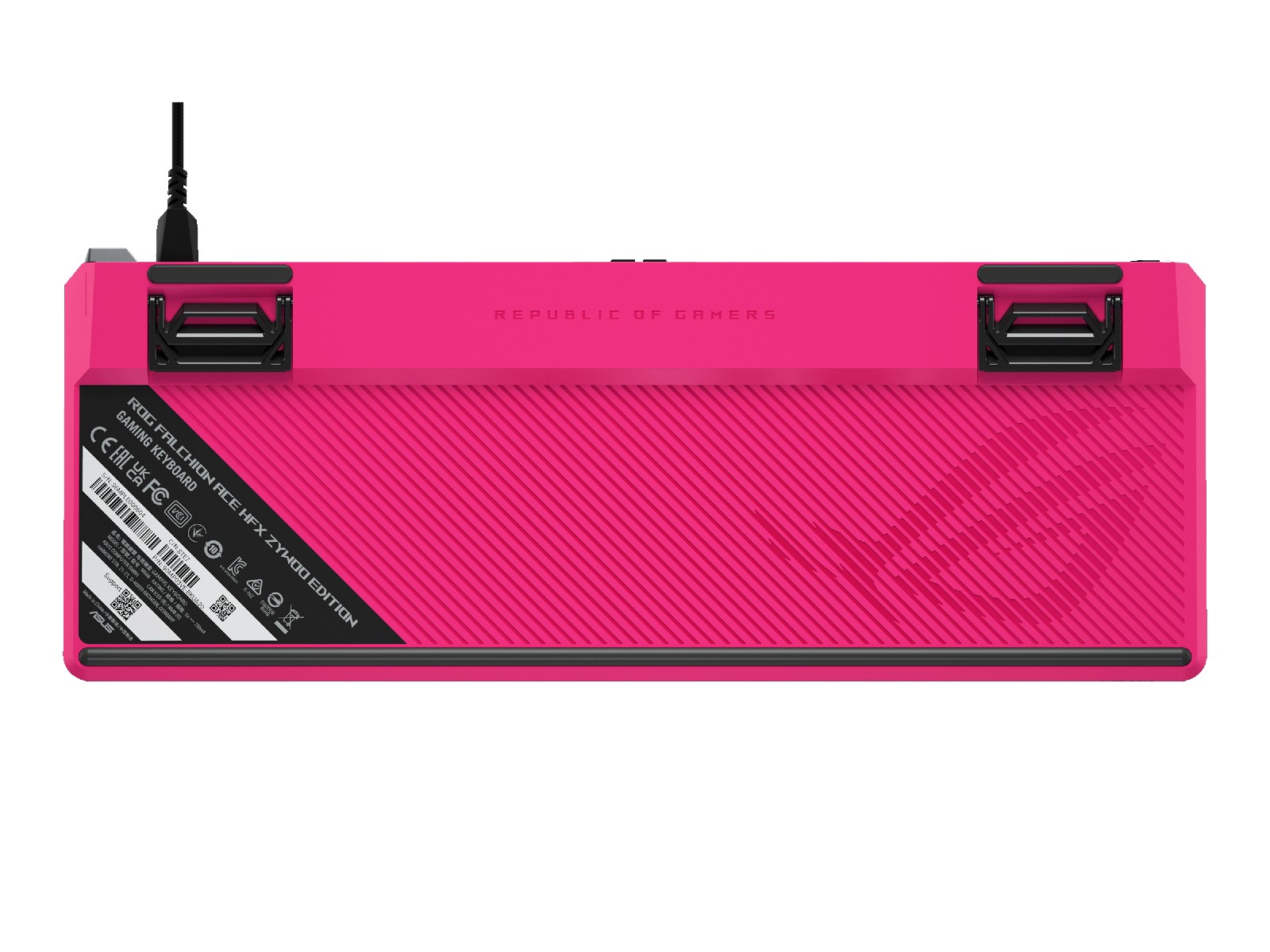 Announced alongside the ROG Azoth 96 HE gaming keyboard, the ROG Falchion Ace HFX ZywOo Edition features magenta-tinted WASD keys, a yellow Enter key, and unique icons, including a sniper-rifle motif. The spacebar bears ZywOo’s signature, and the keyboard comes with a custom ZywOo-branded cover. Overall, it’s a tasteful aesthetic upgrade compared to the plain black original.