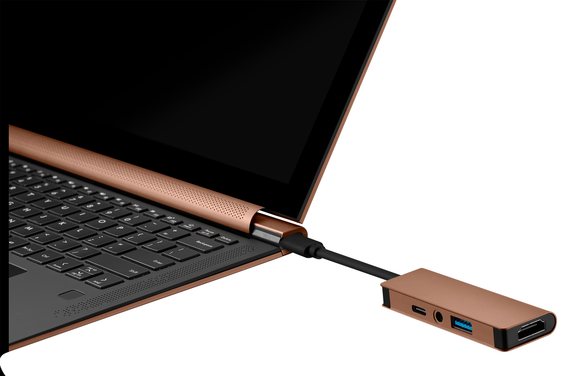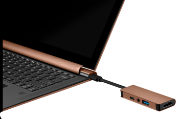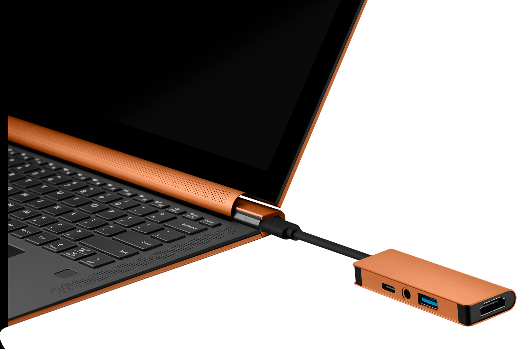 The Avita Admiror stands out from the 14-inch notebook crowd with its Flaming Copper or Blazing Brown color options. These shades are applied to a magnesium-aluminium chassis (apparently inspired by "Gothic architecture") with an original C-fold feature that overlays the laptop's hidden hinge. It also functions to house USB type C ports on either side, the only I/O the device has on its own.