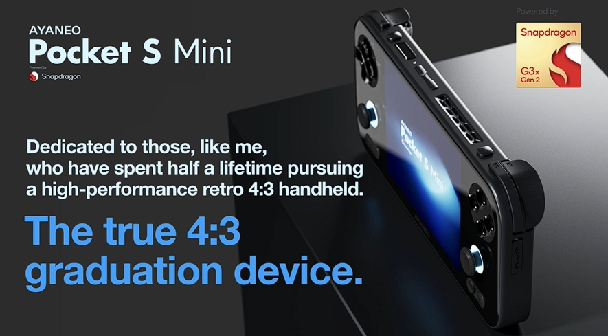 AyaNeo has just announced the Pocket S Mini - a smaller, dedicated 4:3 aspect ratio handheld gaming device in a pocketable form. Scheduled for release in March 2026, the Pocket S Mini expands on the capabilities of the larger Pocket S.