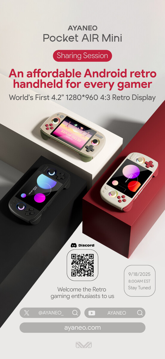 So far, Ayaneo has only confirmed a few display specifications like a 1,280 x 960 native resolution, a 4:3 aspect ratio and a 4.2-inch panel size. Potentially, the company could be about to reveal more hardware details, though. Now, Ayaneo has teased that it will host a Pocket AIR Mini 'sharing session' later today. While the contents of this new livestream remain unknown for now, Ayaneo's timing is conspicuously close to the launch of the Anbernic RG476H.