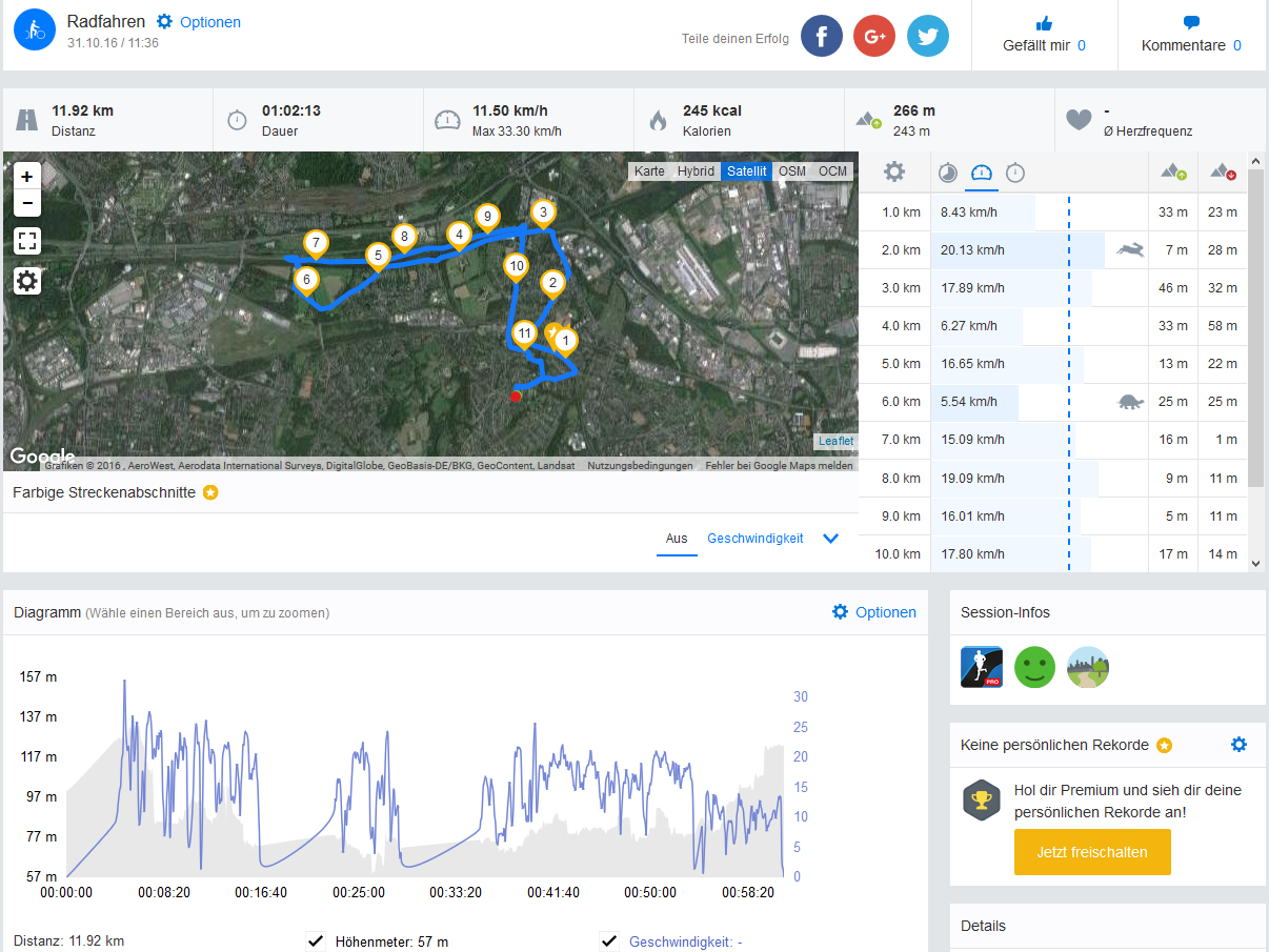 We took the device for a bike ride with our professional biking GPS, the Garmin Edge 500. The smartphone deviated slightly from the route of the professional GPS near the bridge. Overall, the BQ Aquaris X5 Plus had a roughly 2.4% (290 meters/317 yards) shorter path than the one recorded by the Garmin GPS. As such, our test model is quite precise.