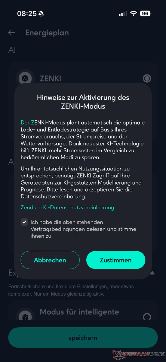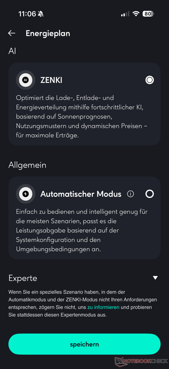 In addition to the "Electricity tariff mode" (in combination with dynamic electricity tariff) and the "Automatic mode" (simple solution) the "ZENKI mode", introduced a few months ago with SolarFlow 800 Pro and SolarFlow 2400 AC, is also available. This is an AI platform that intelligently optimizes charging, discharging and energy distribution, taking into account solar forecasts, usage patterns and dynamic electricity prices.
