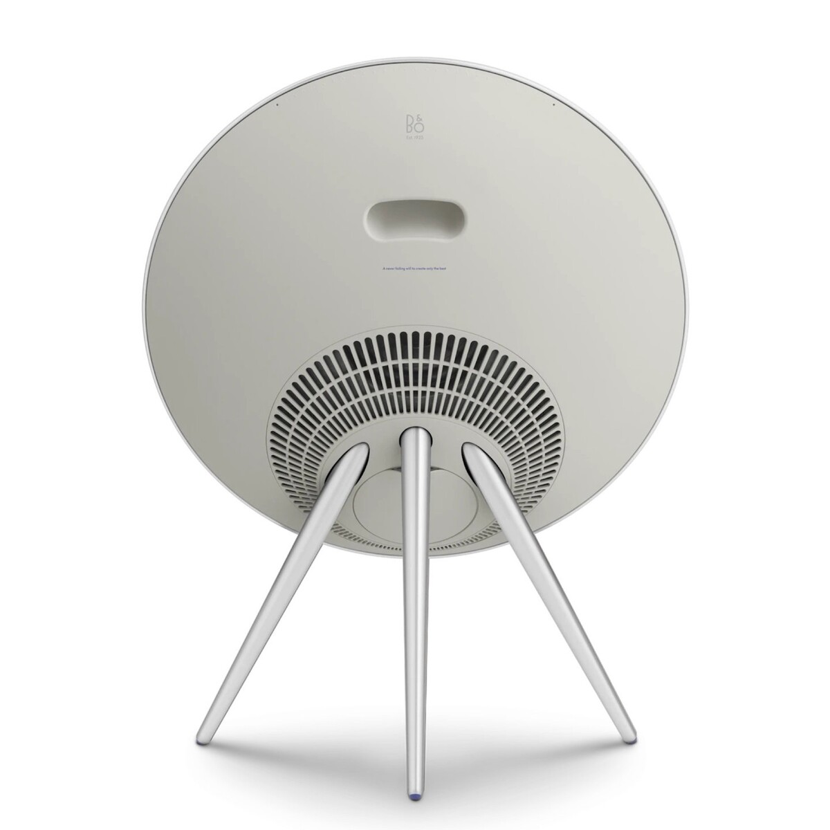 The Beosound A9 in "Century Blue" combines a silver aluminum housing with metal feet and a dark blue fabric cover from Kvadrat. The round speaker, with a diameter of 70 centimeters, houses seven drivers, including a 200-millimeter woofer, as well as amplifiers with a total output of 1,500 watts. The sound can be automatically adjusted to suit the room.