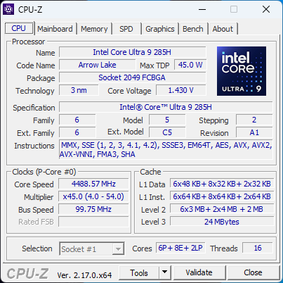 | Average Intel Core Ultra 9 285H (58110 - 117613, n=9) | |