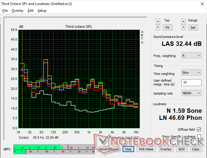 Fan noise tops out in the low 30 dB(A) range when running demanding loads including games to be quieter than many other mini PCs powered by H-series CPUs. However, keep in mind that this can easily jump closer to the 40 dB(A) range when setting the system to Performance mode via BIOS.