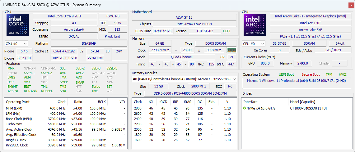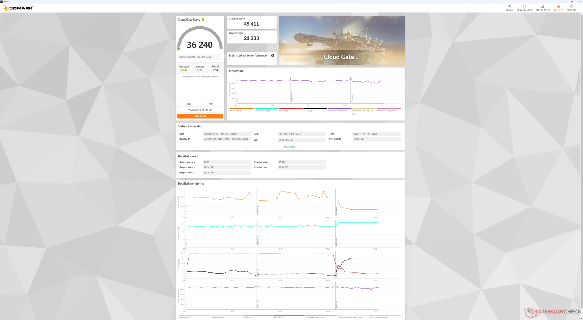 | Average Intel Core Ultra 9 285H, Intel Arc Graphics 140T | |