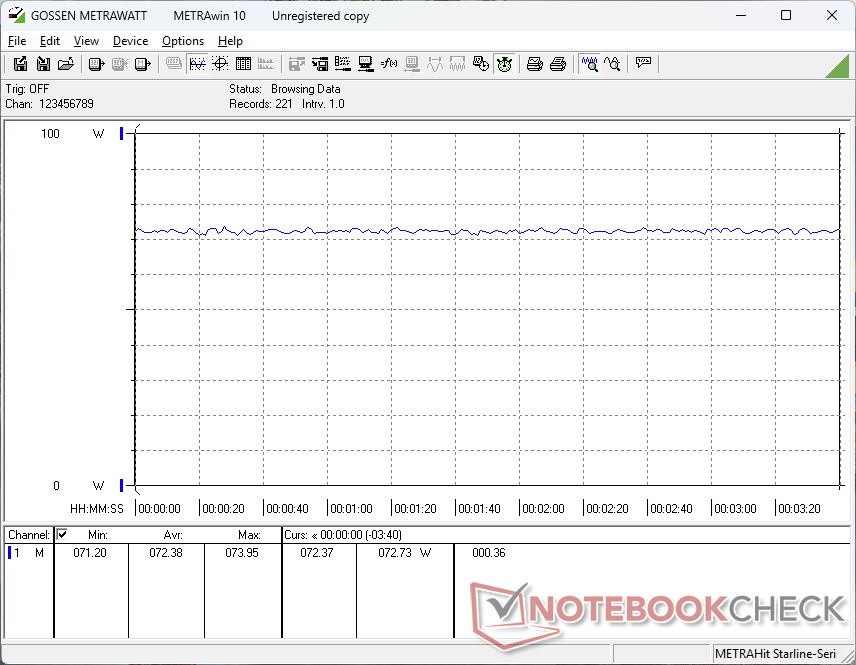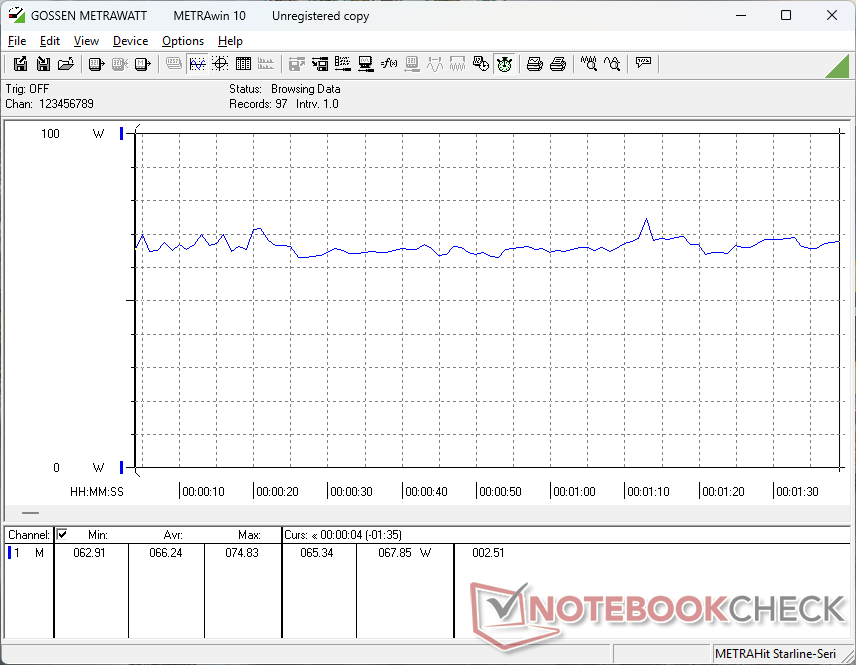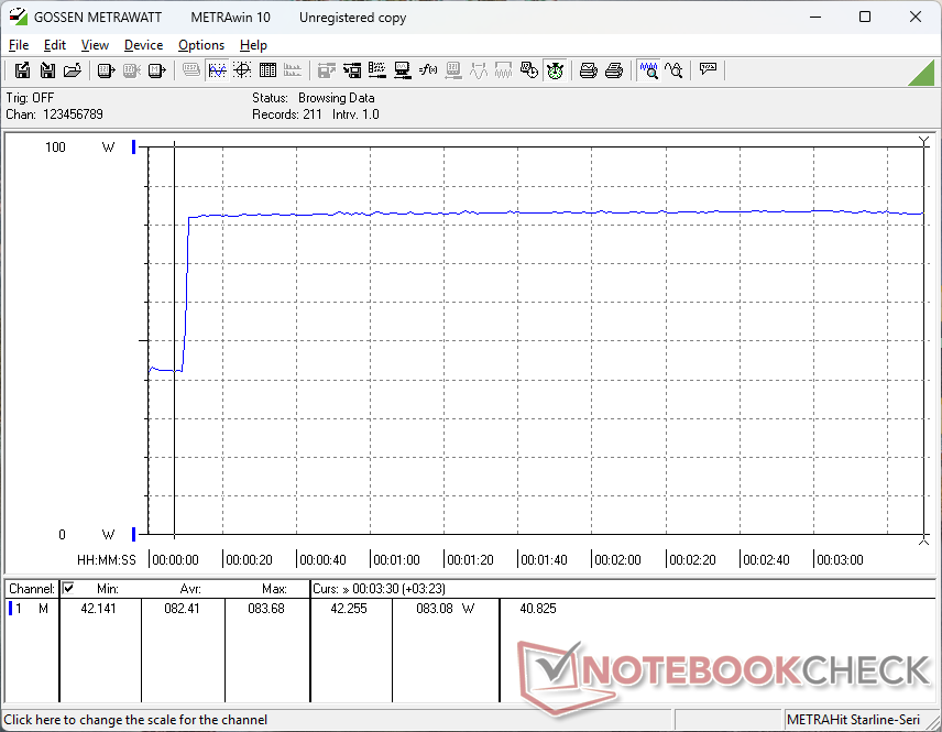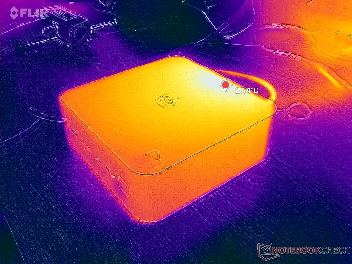 Consumption is unusually high when idling on desktop even after checking for background activity or stealth programs. The high rate would even occur when in Sleep mode as well to suggest a potential CPU power state bug. It is otherwise where we expect it to be when running more demanding loads. The system is less demanding than the AMD-powered GMK NucBox K12 while offering slightly faster performance for better performance-per-watt.