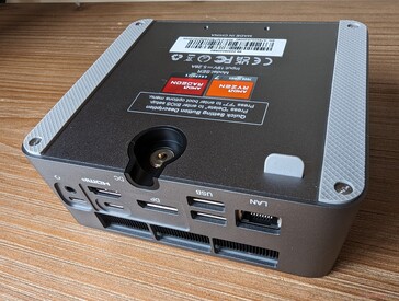 We're able to measure a maximum draw of 95 W from the small (~7 x 7 x 3 cm) 100 W wall wart AC adapter when the CPU is at 100 percent utilization. This can prove to be problematic if attempting to power multiple external USB-C devices simultaneously and so a larger 120 W or 130 W AC adapter would have likely been more appropriate to better support both the mini PC and any connected accessories.
