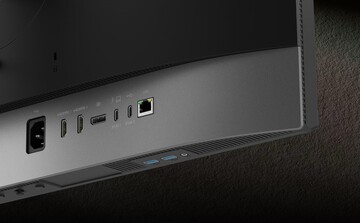 The monitor supports Thunderbolt 4 and can charge laptops connected via USB-C with 96 watts. An integrated KVM switch, a two-port USB hub, two HDMI ports, DisplayPort, Ethernet and a height-adjustable stand round out the features.
