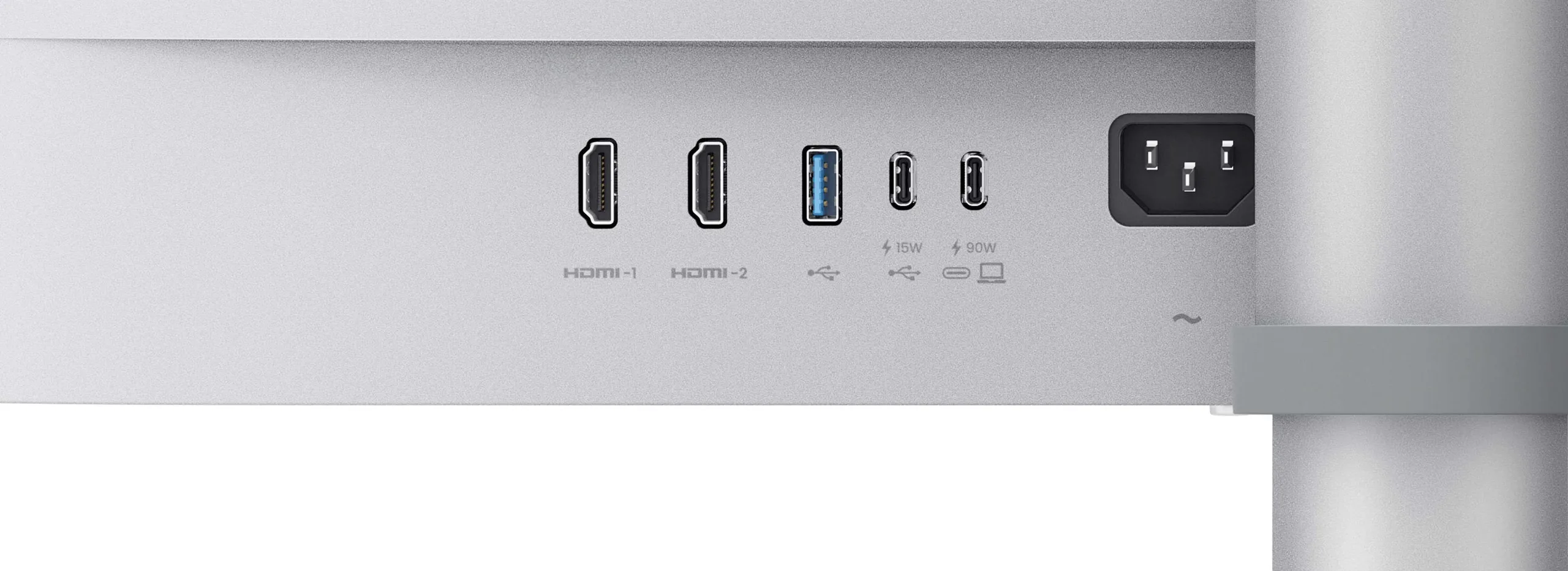Ergonomic features are available, including height adjustment, tilt adjustment and 90-degree rotation for portrait mode (pivot). A USB-C port is on board, allowing compatible devices to be powered via USB PD with up to 90 watts. HDMI and DisplayPort connections are also available, as well as additional USB ports for connecting peripherals such as a mouse and keyboard.