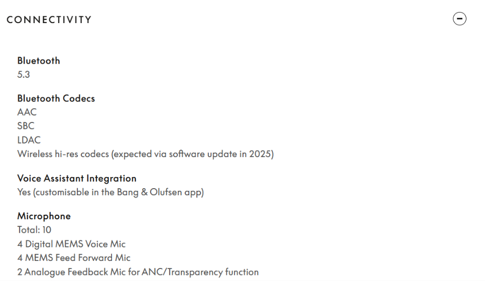 Likewise, the company updated its Product Sheet to omit the promise of adding 3-device multipoint connectivity via a software update this year, too. Thus, we would not be surprised if Bang & Olufsen quietly dropped this commitment soon as well without clarifying further.
